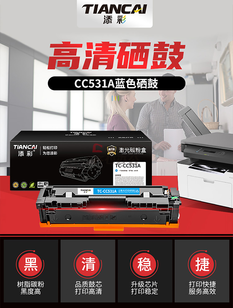 添彩 商用版TC-CC531A C 硒鼓 2800页 适用机型:惠普HP Pro 300 Color M351A/MFP M375nw 蓝色 (计价单位:盒)