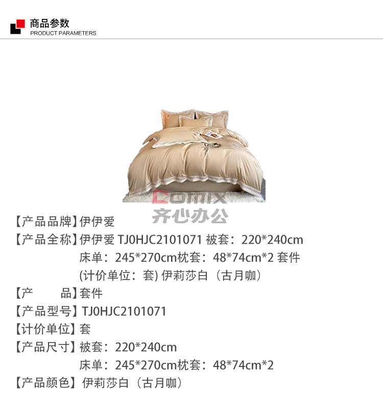 伊伊爱TJ0HJC2101071伊丽莎白100S绣花四件套220*240cm古月咖(单位:套)