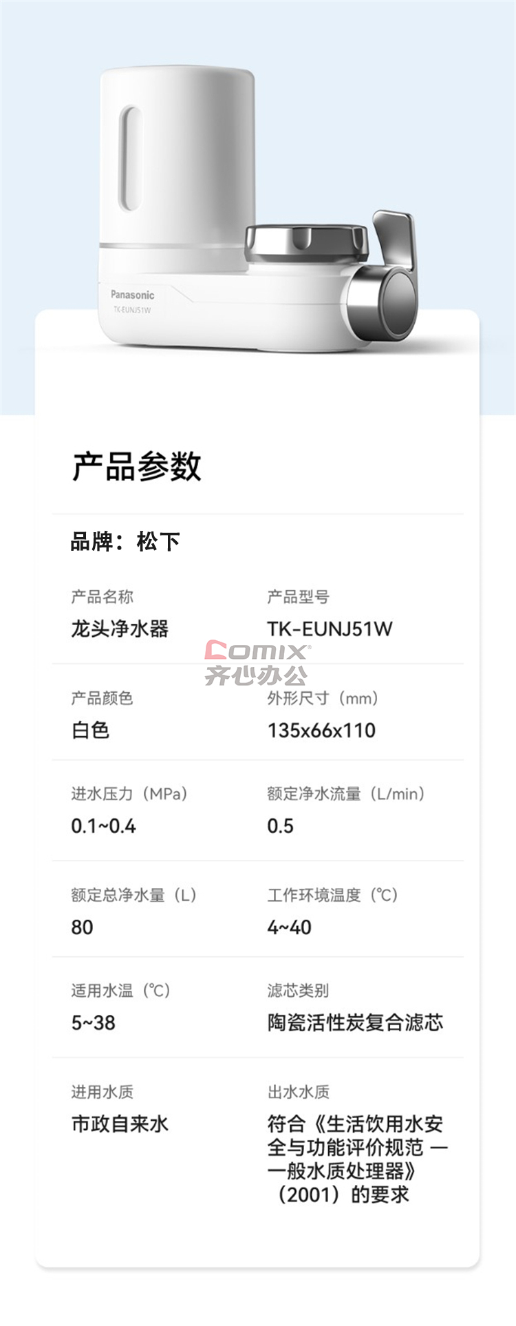 商品名称:松下 TK-EUNJ51W 龙头净水器 单位:个