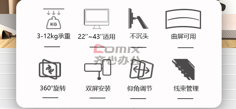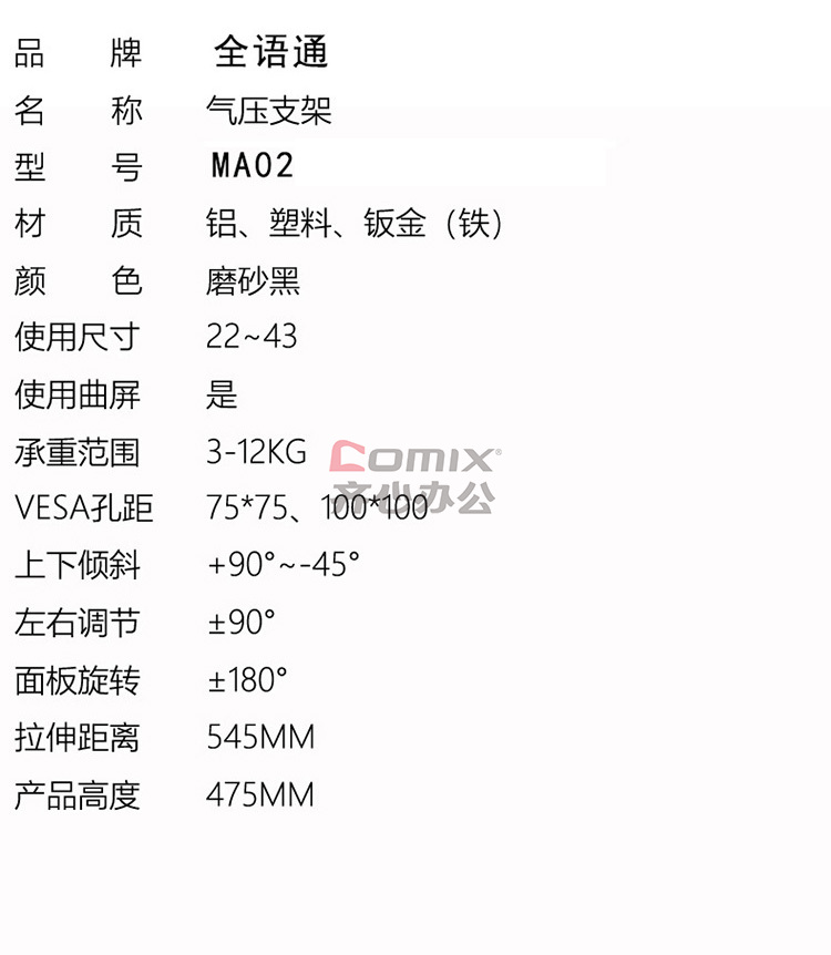 商品名称:全语通 MA02 电脑支架 桌面升降显示器支架 黑色 单位:个