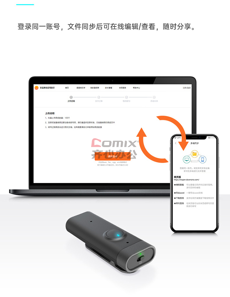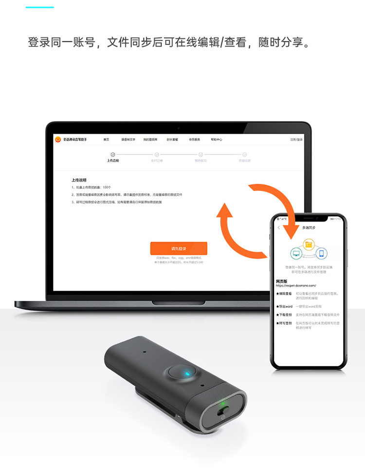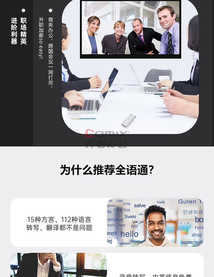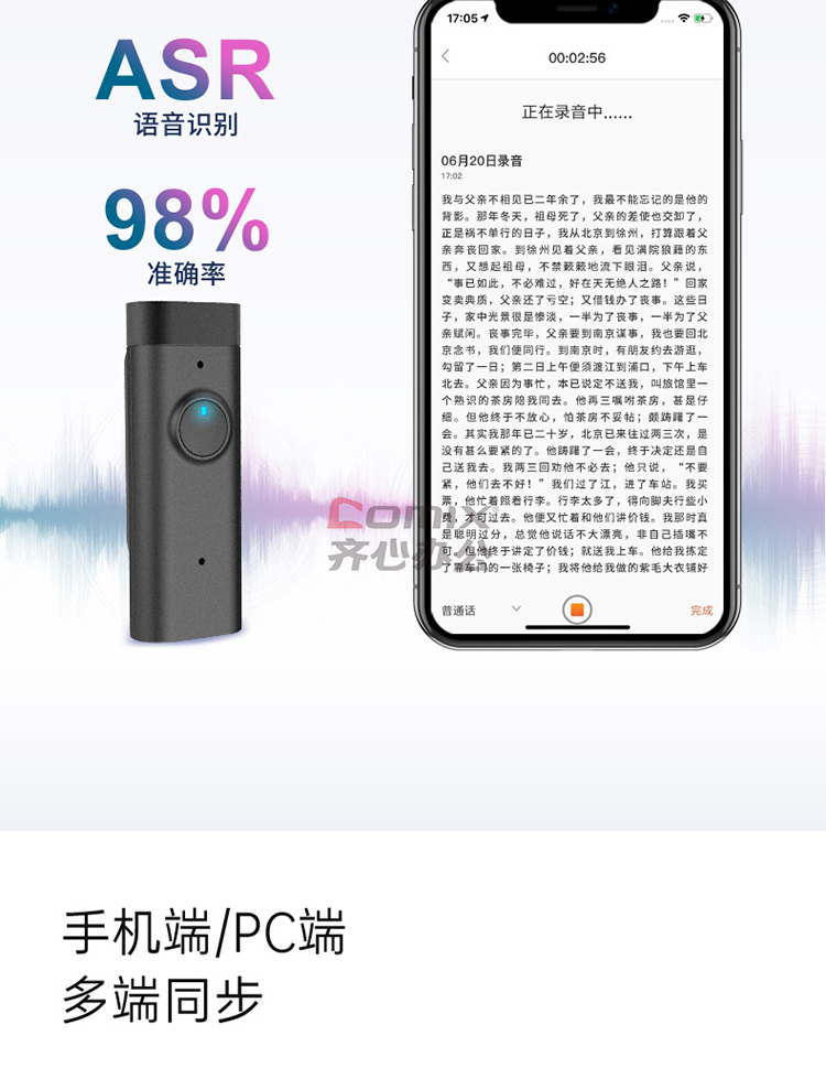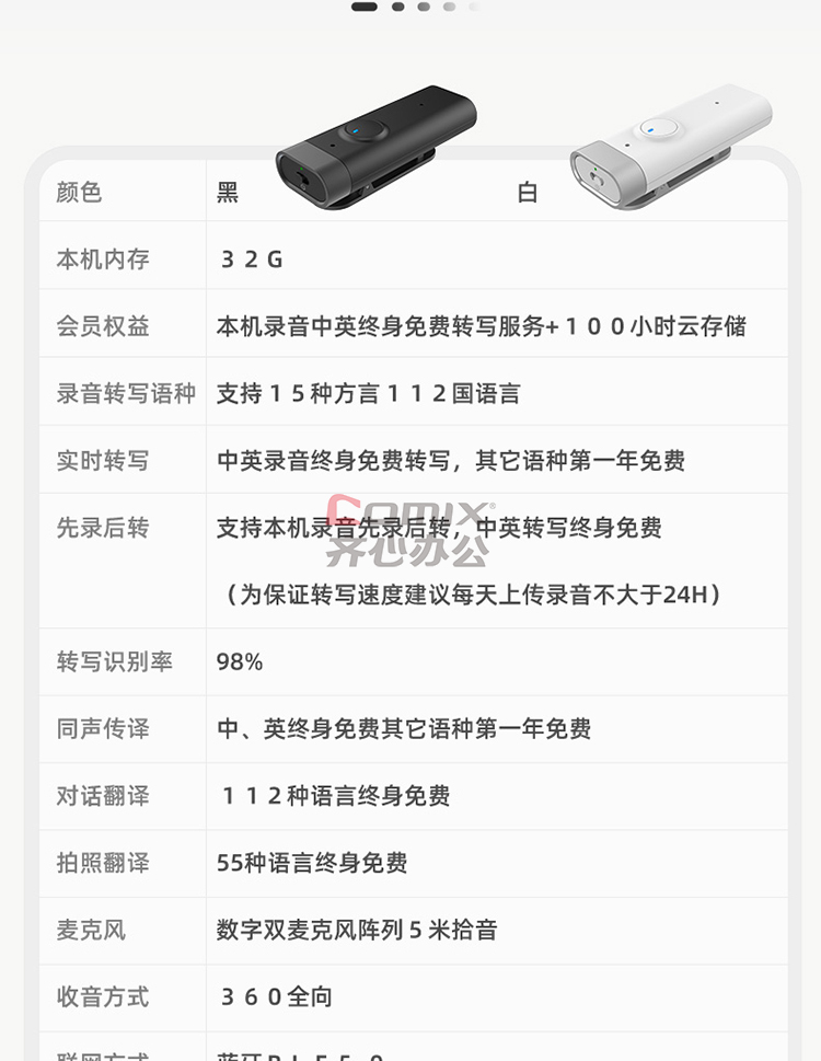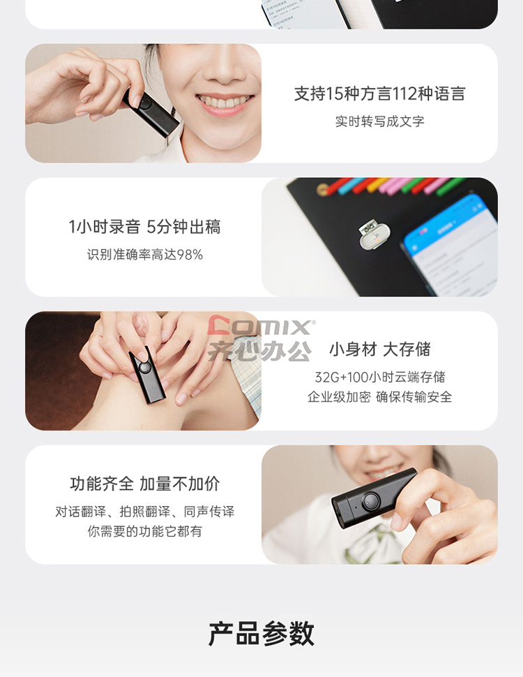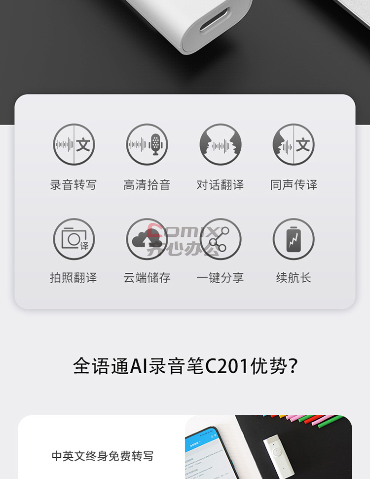 商品名称:全语通 C201 AI录音笔 黑色 32G 语音转文字高清降噪 录音器同声传译拍照翻译 单位:个