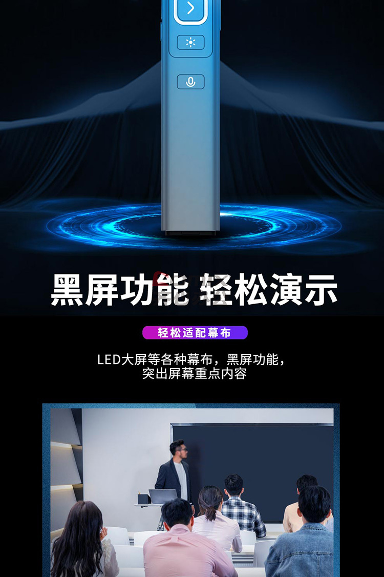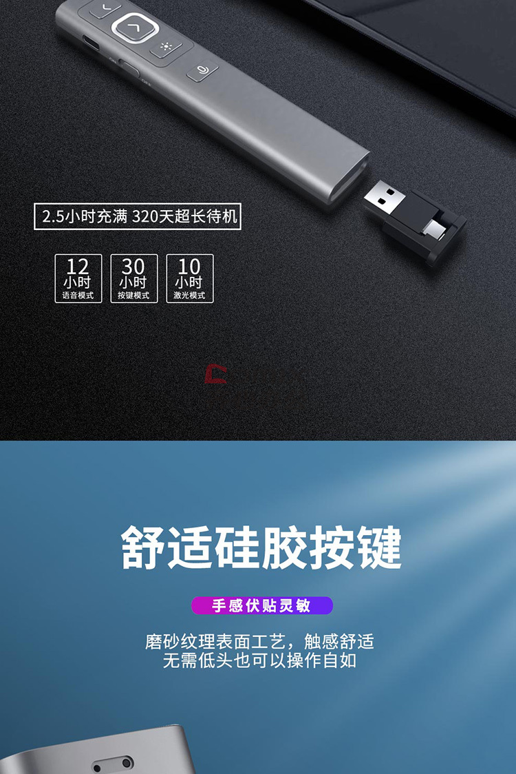 商品名称:全语通 C602 智能语音转写翻页笔离远控 PPT翻页激光笔 无线演示器 黑色 单位:个
