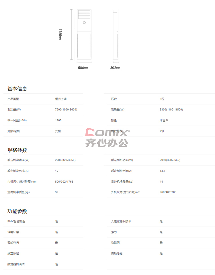 - 商品名称:海尔(Haier) KFR-72LW/03XDB82U1 变频冷暖二级能效3匹立柜式空调白色 单位:台