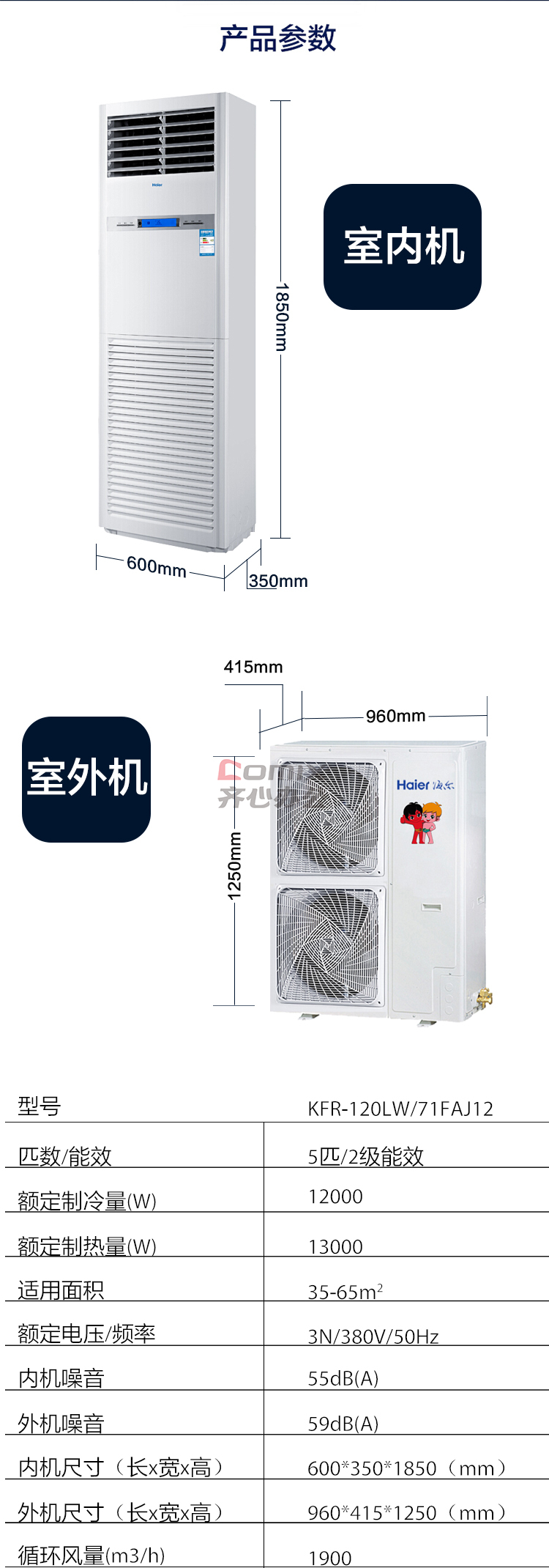 - 商品名称:海尔 KFR-120LW/71FAJ12 方形柜式5匹机房空调 二级能效 白色(单位:套)
