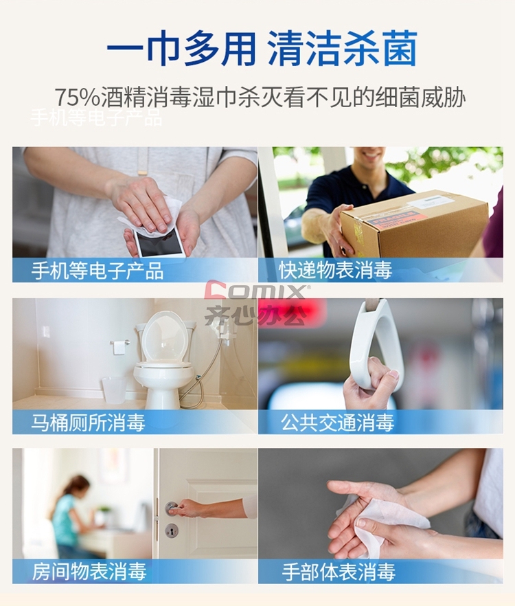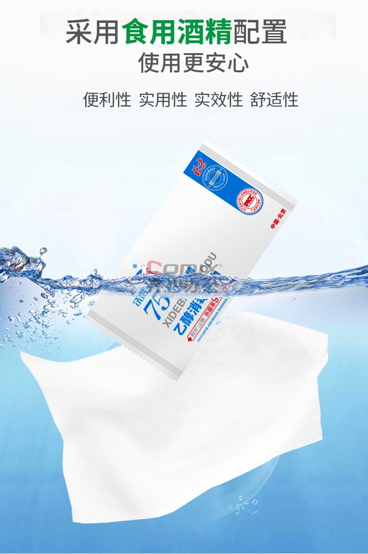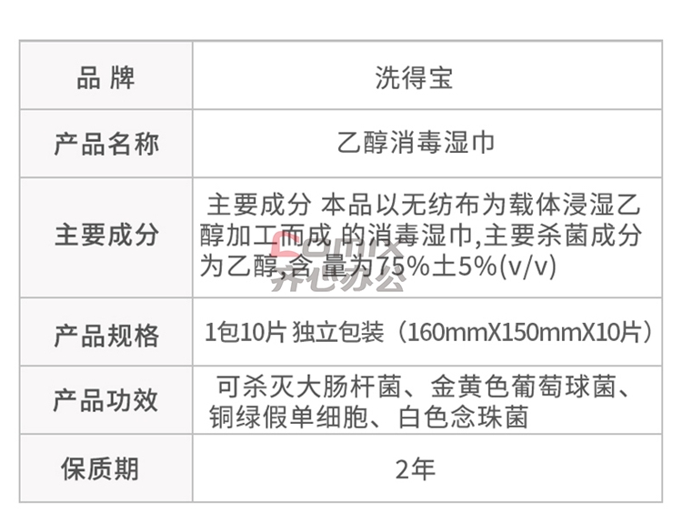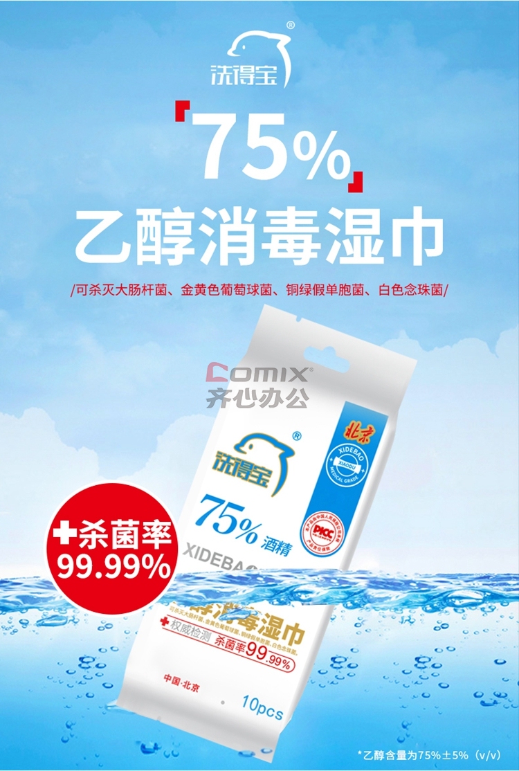 商品名称:洗得宝 75%酒精湿巾 独立包装 10片/包 蓝白 (单位:包)