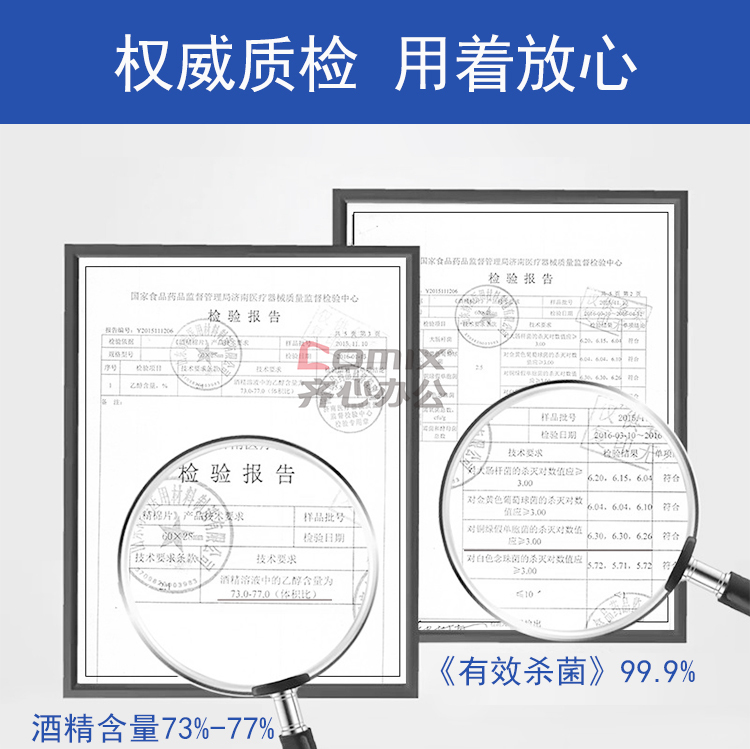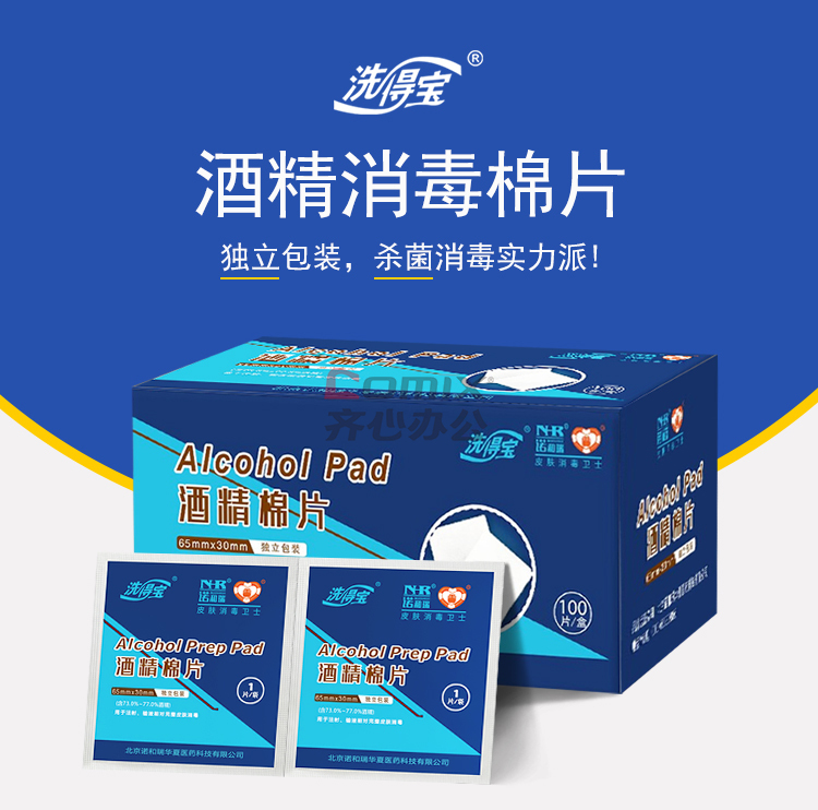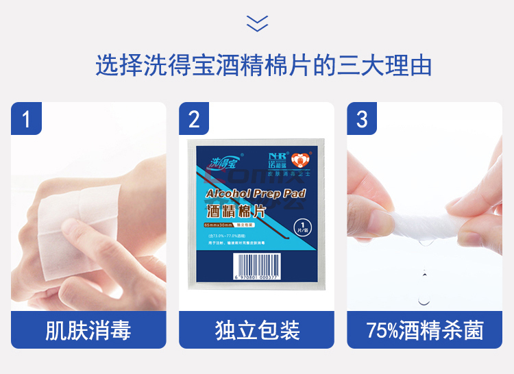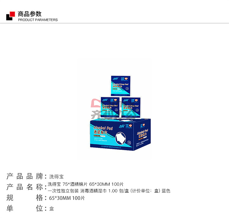 商品名称:洗得宝 75%酒精棉片 一次性独立包装 擦手机镜片 65*30mm 100片 蓝 (单位:盒)