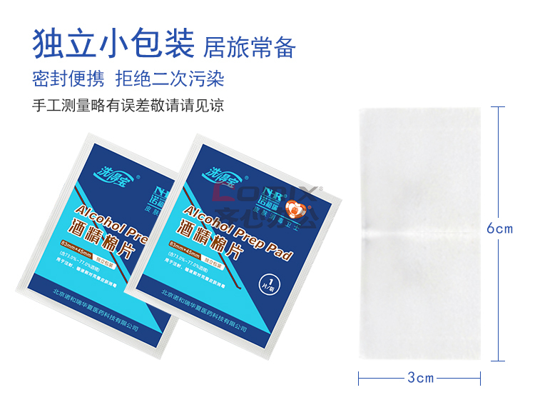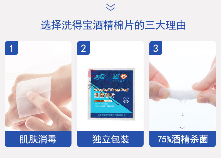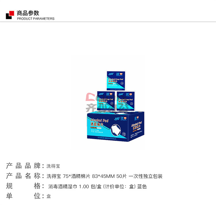 商品名称:洗得宝 75%酒精棉片 一次性独立包装 擦手机镜片 83*45mm 50片 蓝 (单位:盒)