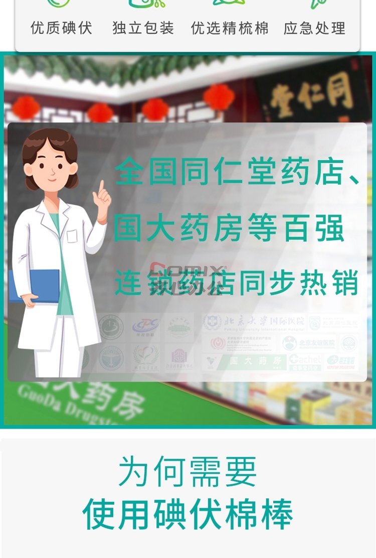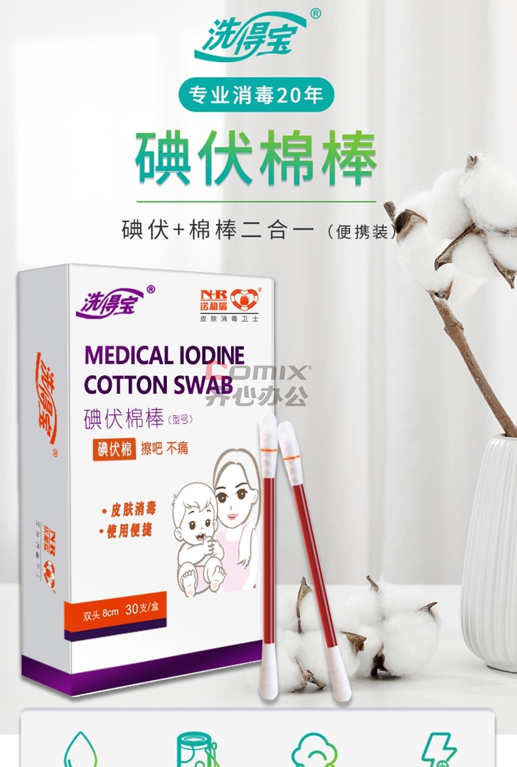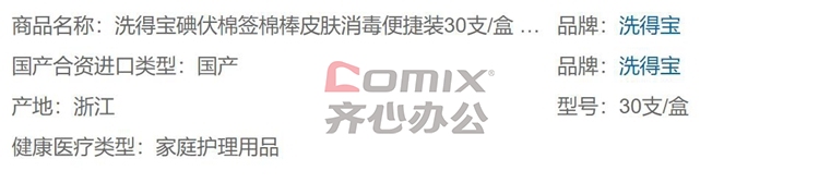 商品名称:洗得宝 碘伏棉签棉棒 30支 橙白 (单位:盒)