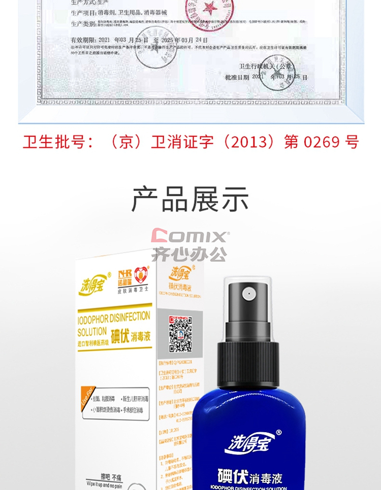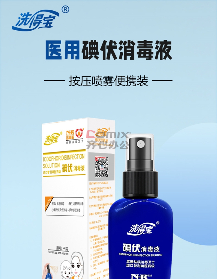 商品名称:洗得宝 碘伏消毒液喷雾 医用碘伏 不含酒精 52ml 蓝 (单位:瓶)