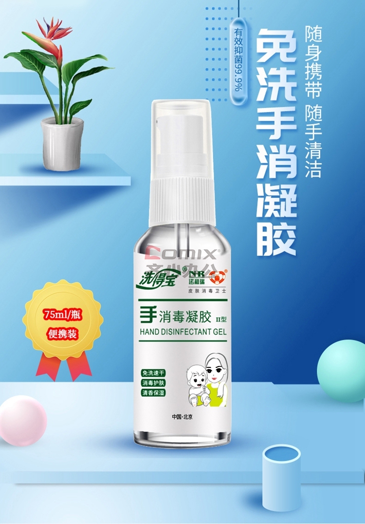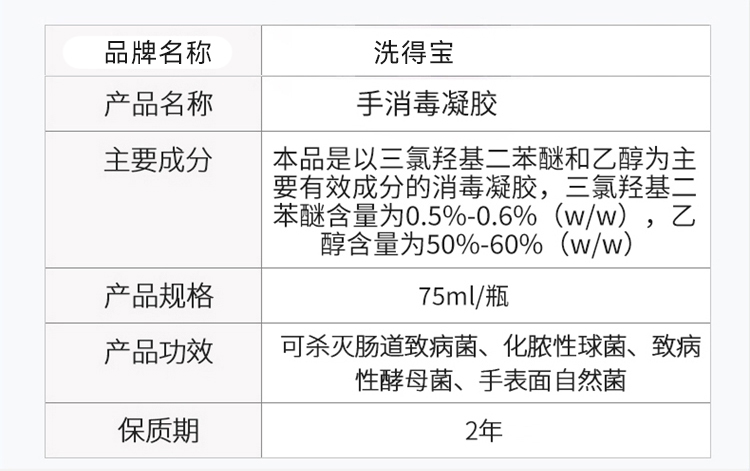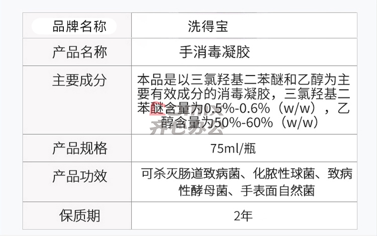 商品名称:洗得宝 免洗洗手液 消毒凝胶 便携装 75ml 蓝(单位:瓶)