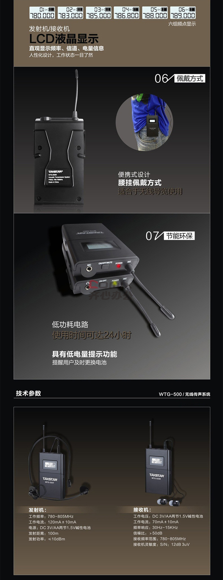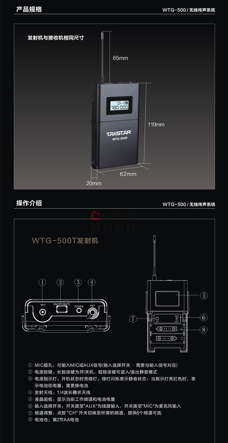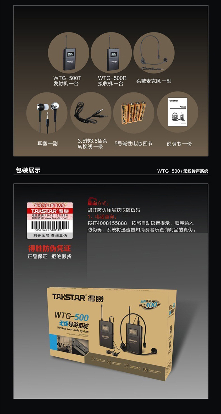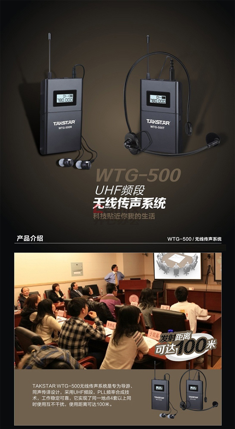 商品名称:得胜(TAKSTAR)WTG-500 无线讲解器一对多传声系统导游教学同声传译 发射器+接收器 单位:个