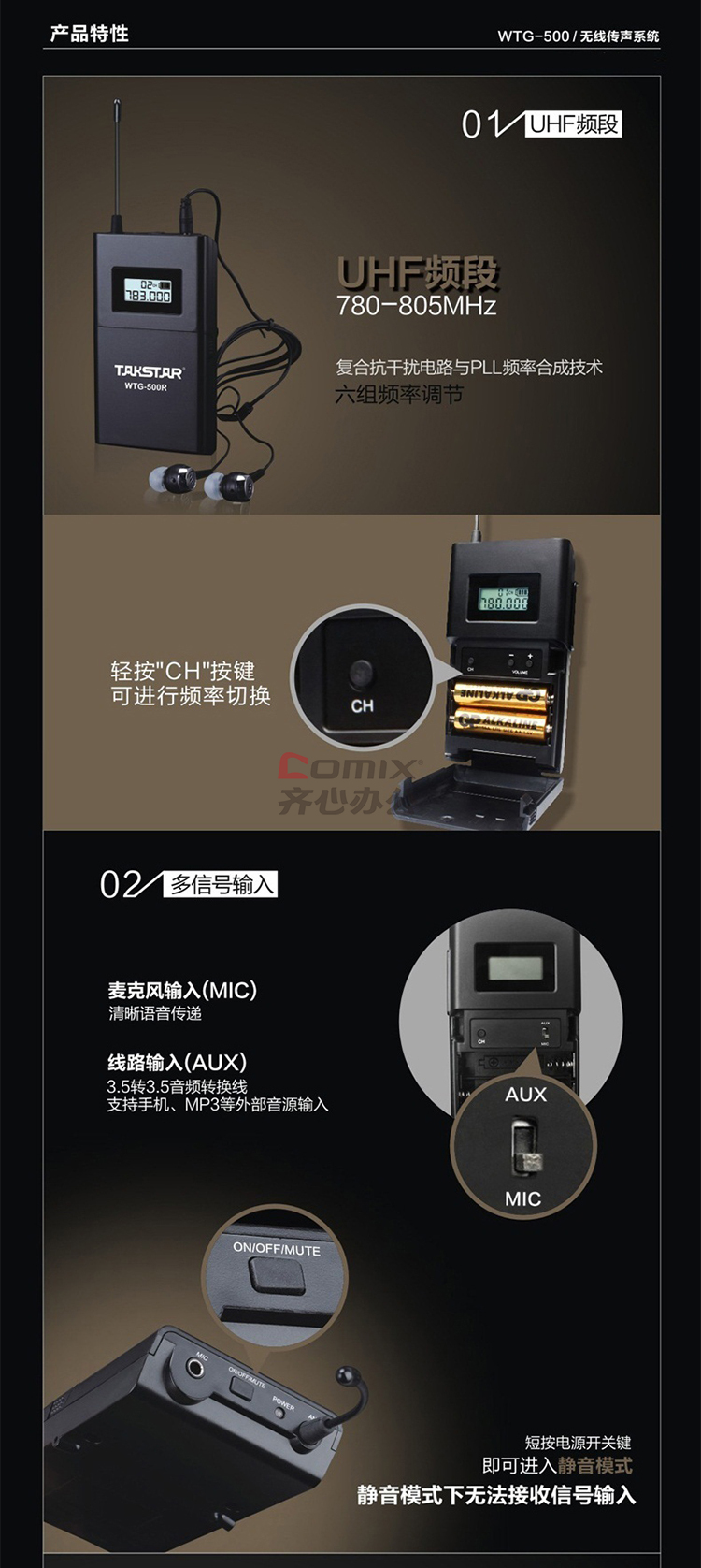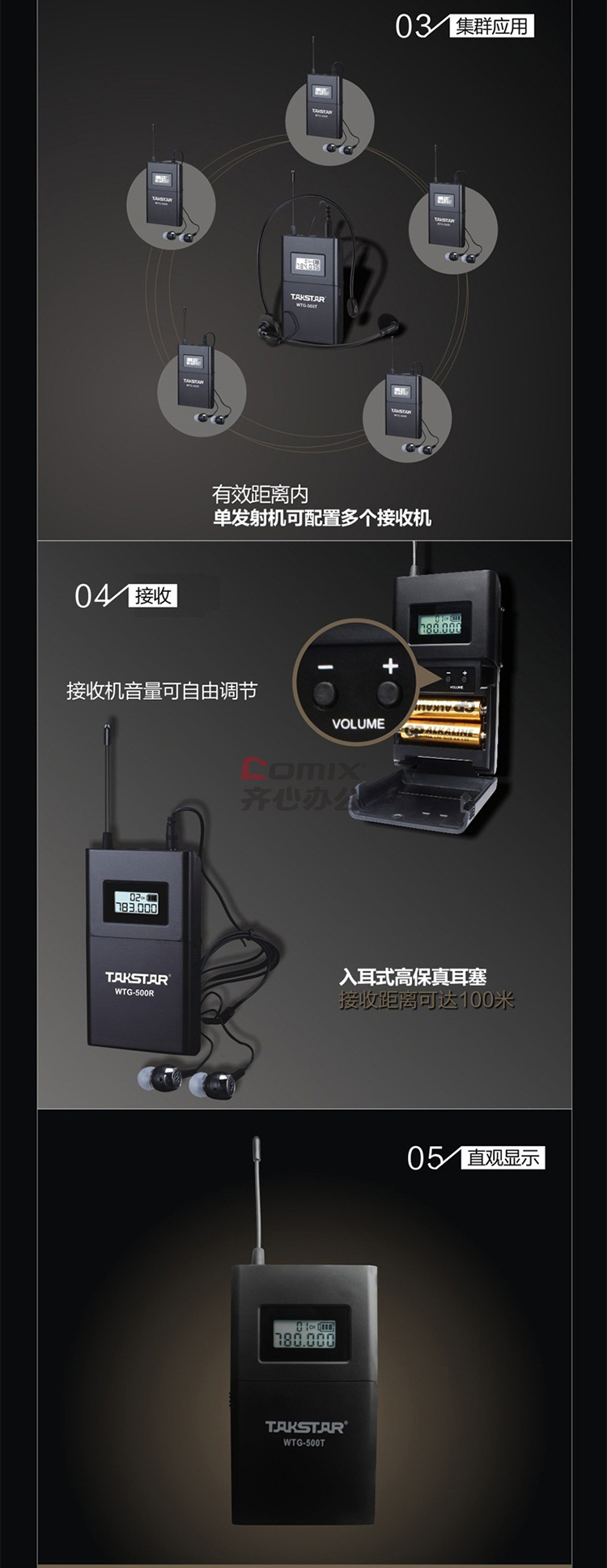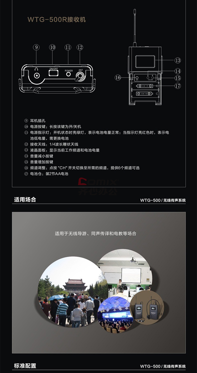 商品名称:得胜(TAKSTAR)WTG-500 无线讲解器一对多传声系统导游教学同声传译 发射器+接收器 单位:个