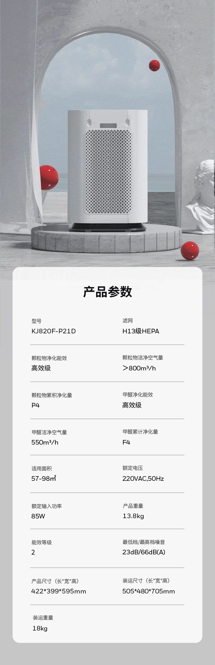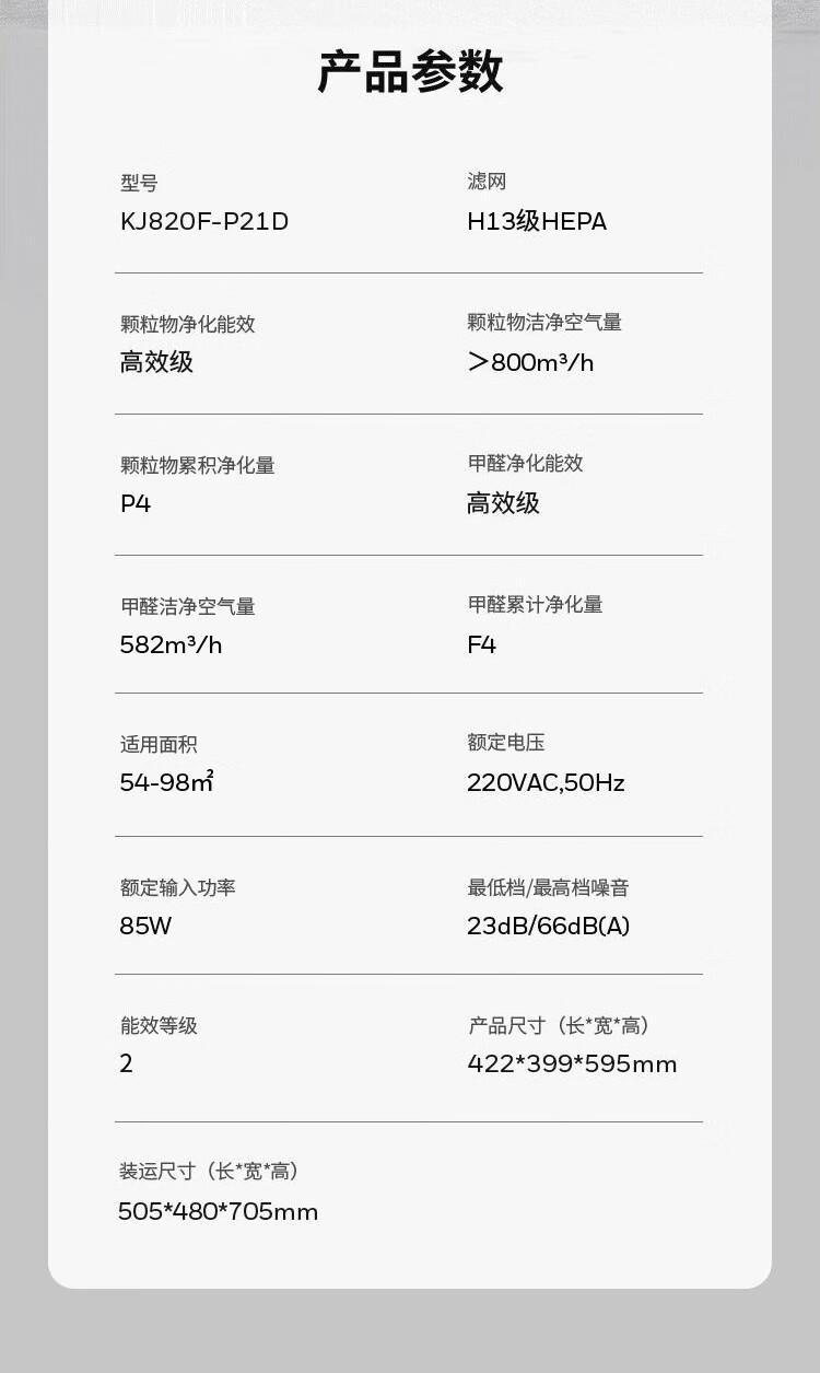 商品名称:霍尼韦尔 KJ820F-P21D 85W 空气净化器 白色 单位:台