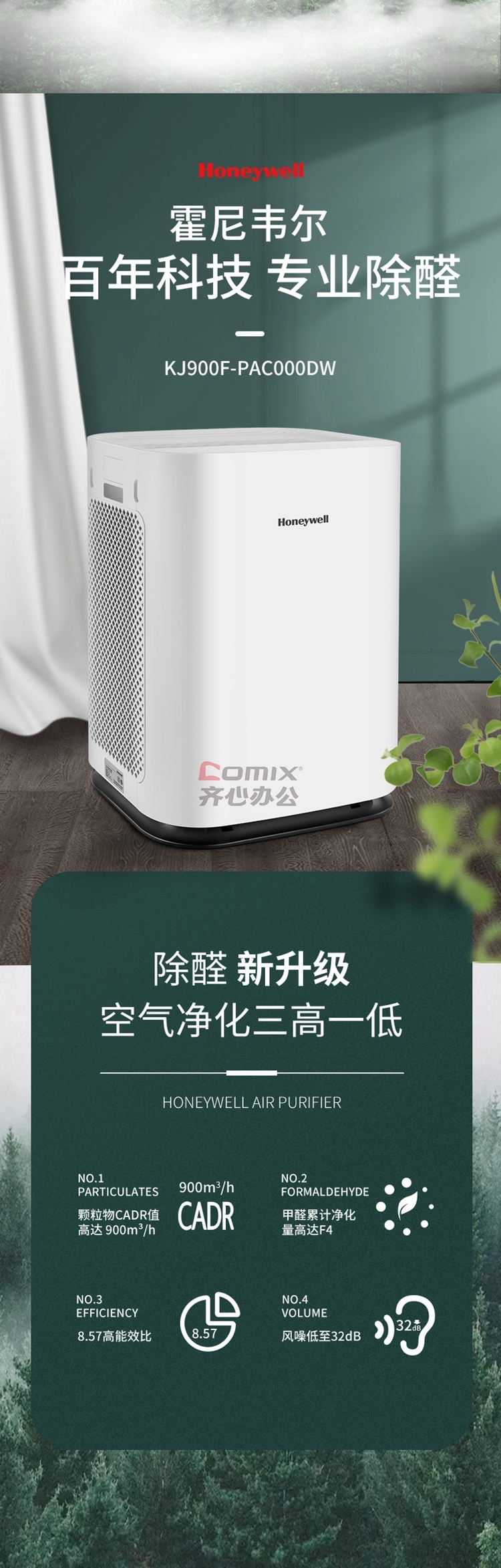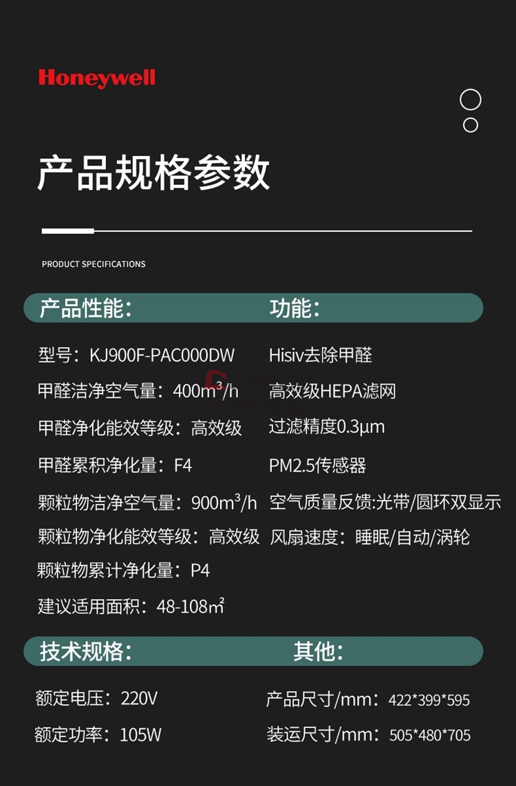 商品名称:霍尼韦尔 KJ900F-PAC000DW 105W 空气净化器 白色 单位:台