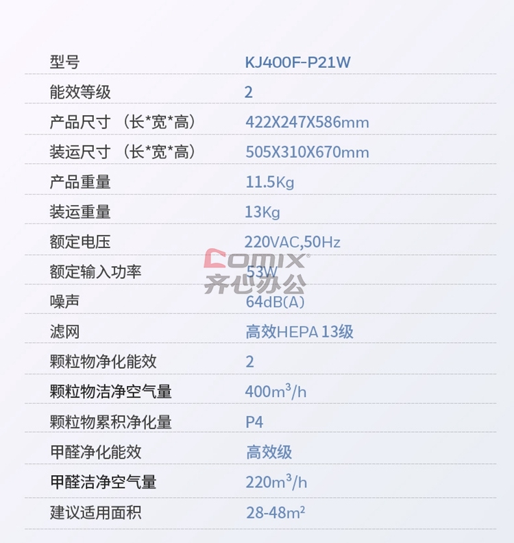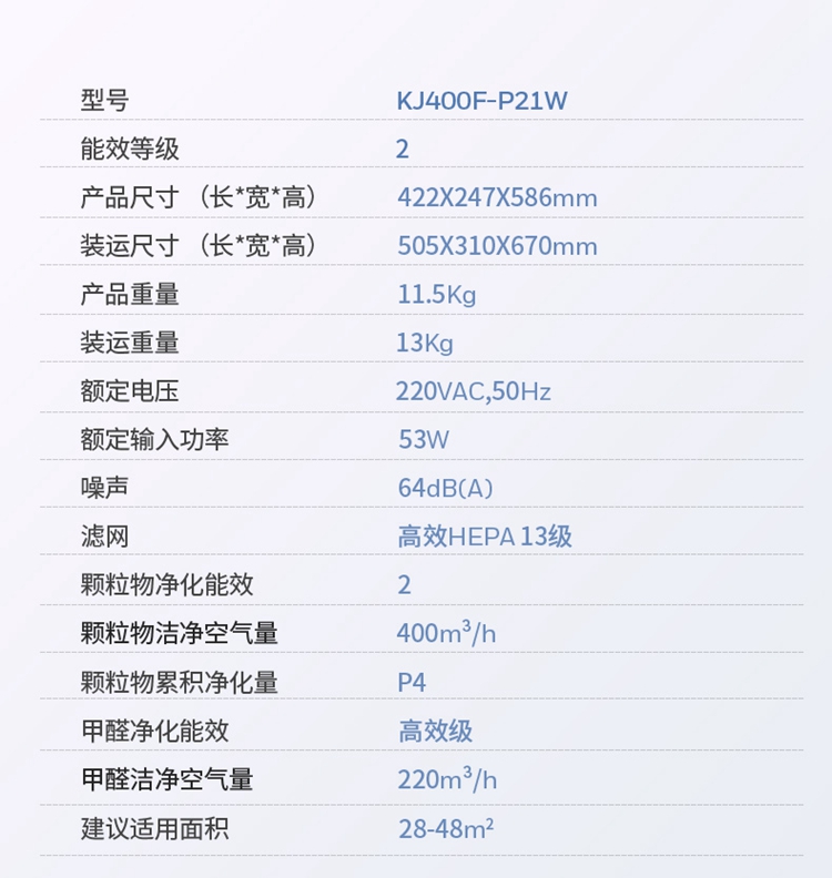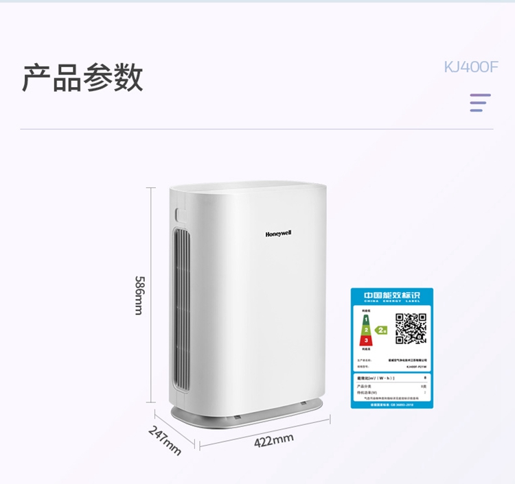 商品名称:霍尼韦尔 KJ400F-P21W 53W 空气净化器 白色 单位:台