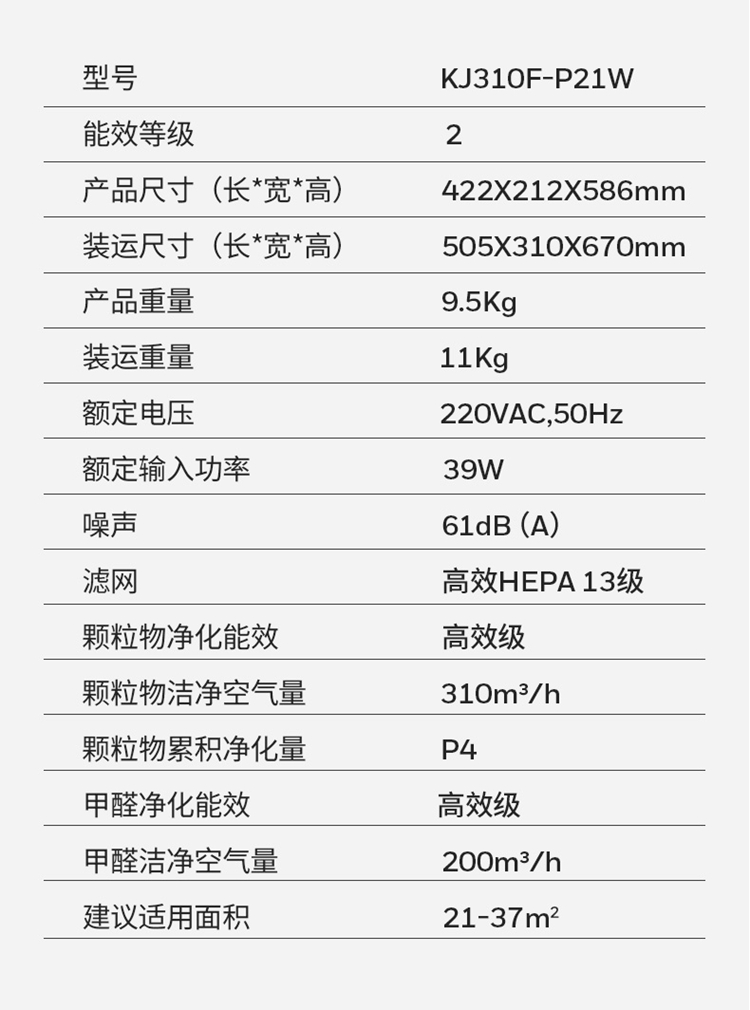 商品名称:霍尼韦尔 KJ310F-P21W 39W 空气净化器 白色 单位:台