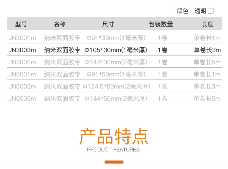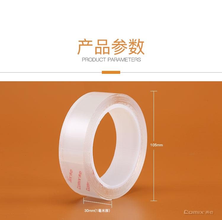 商品名称:齐心 JN3003m 双面透明胶带 30mm*3m*1mm 透明 1卷/袋 单位:袋