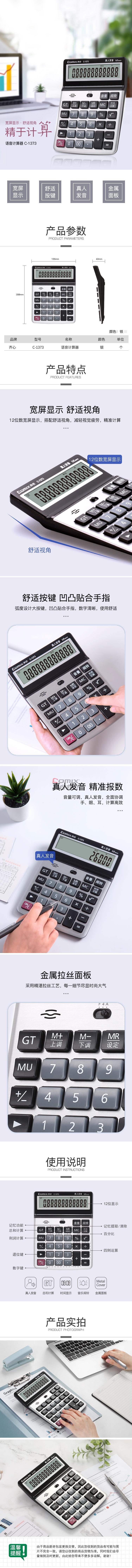商品名称:齐心 C-1373 语音计算器 银 单位:个