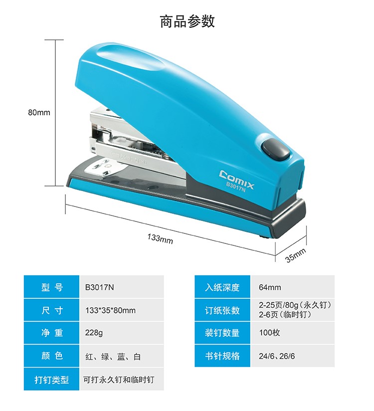 商品名称:齐心 B3017N 省力订书机 白色 单位:个