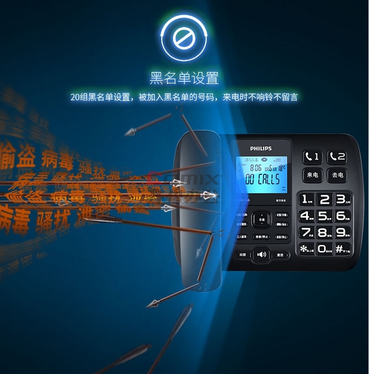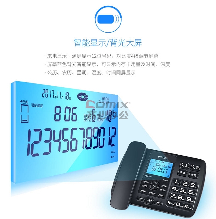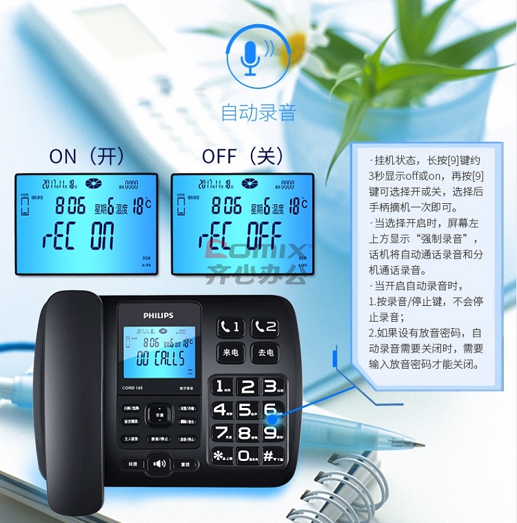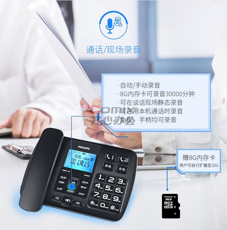 商品名称:飞利浦 CORD165 配16G卡 录音自动应答电话机(单位:部)