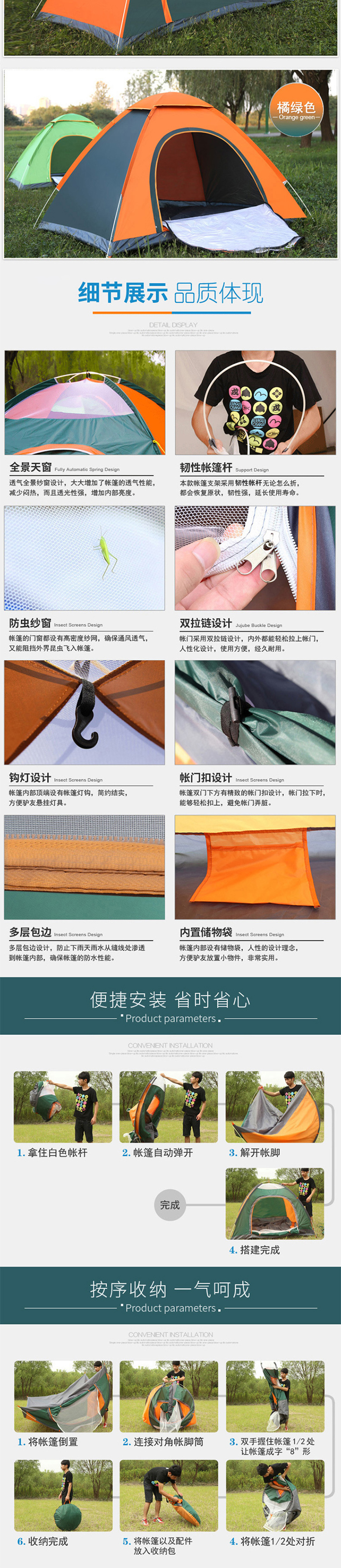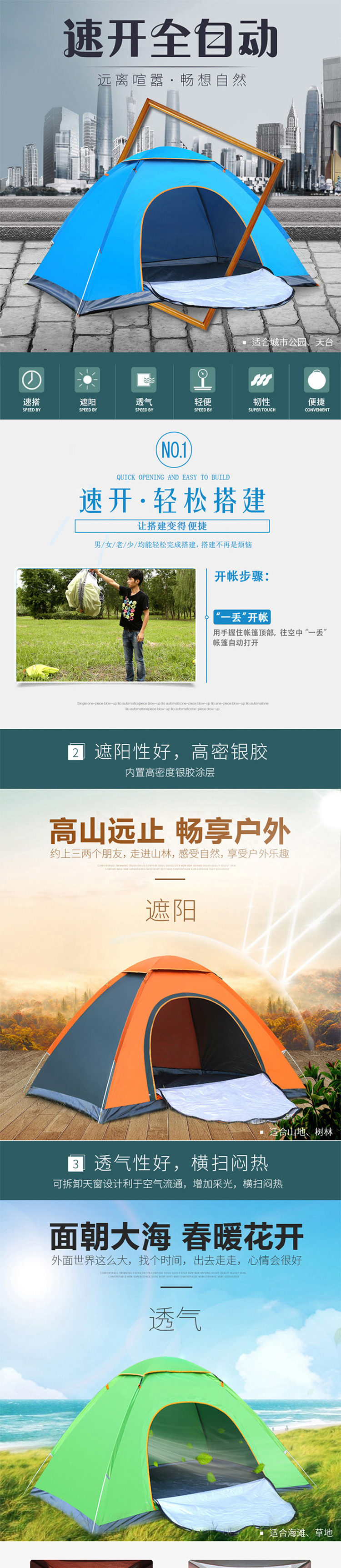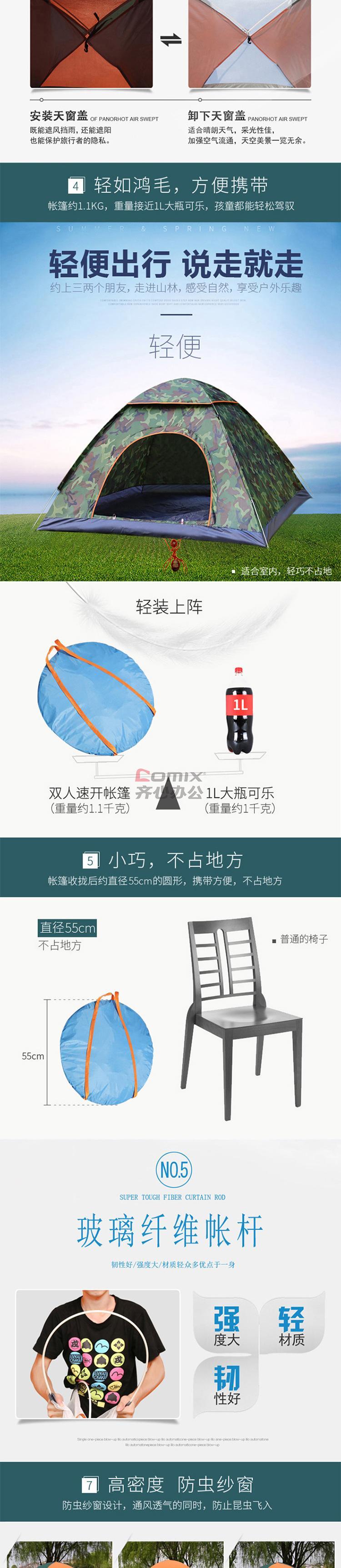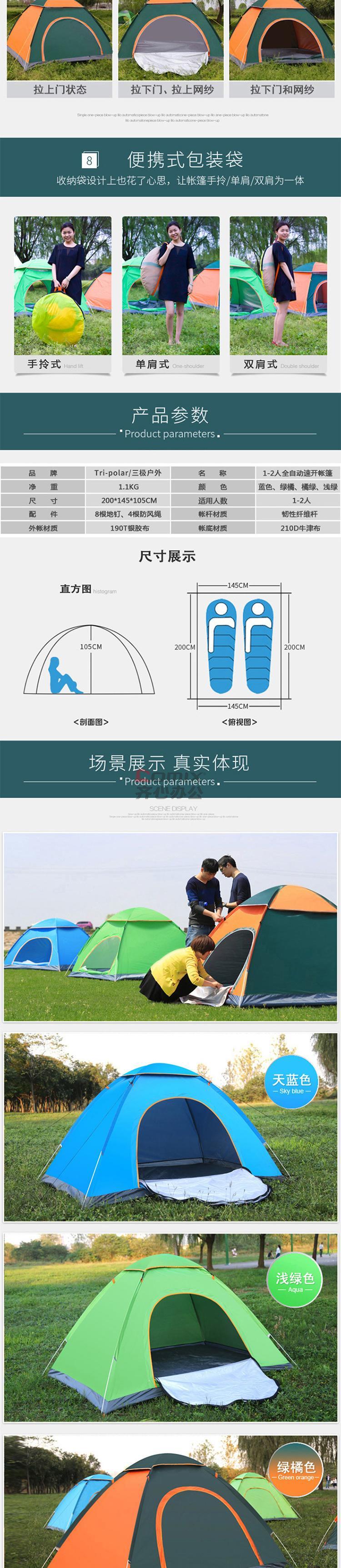 商品名称:三极户外 TP2307 全自动野营速抛帐篷 200*145*105cm 双人蓝色 单位:顶