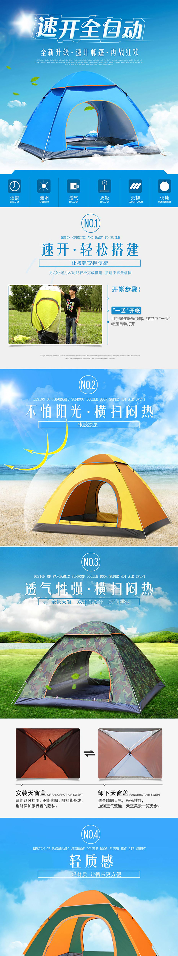 - 商品名称:三极户外 TP2306 全自动速抛帐篷 200*150*115cm 天蓝色 2-3人双门 单位:顶