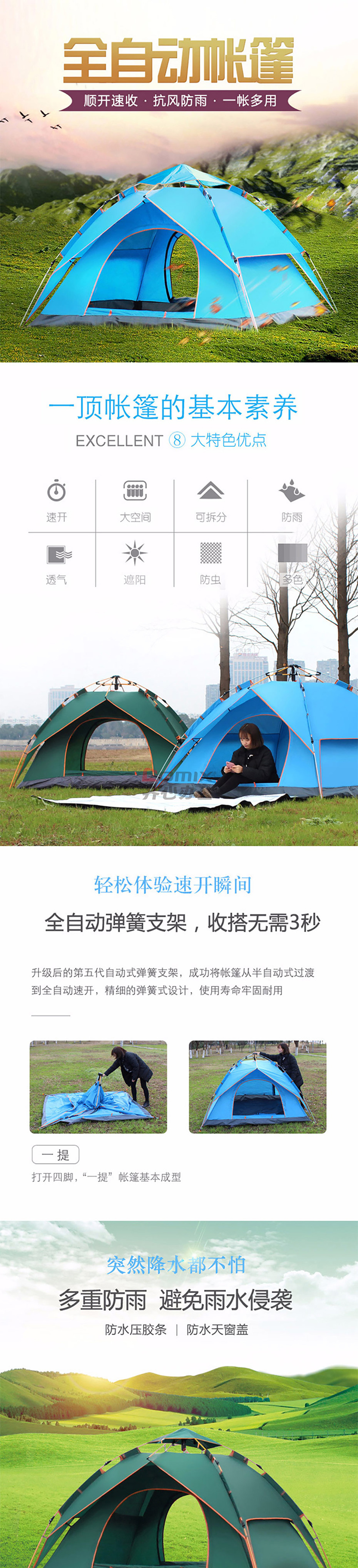 - 商品名称:三极户外 TP2302 速开弹簧帐篷 240*210*135cm天蓝色3-4人双层两用帐篷 单位:顶