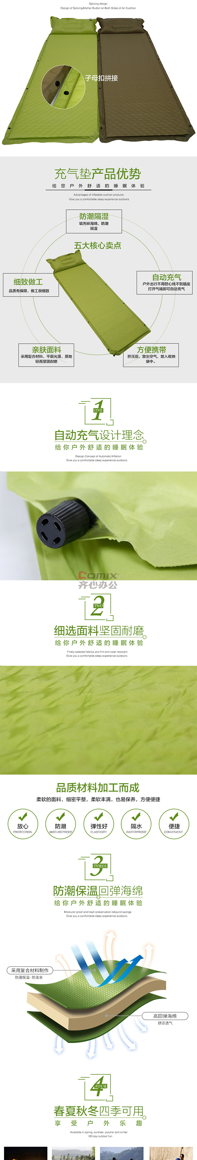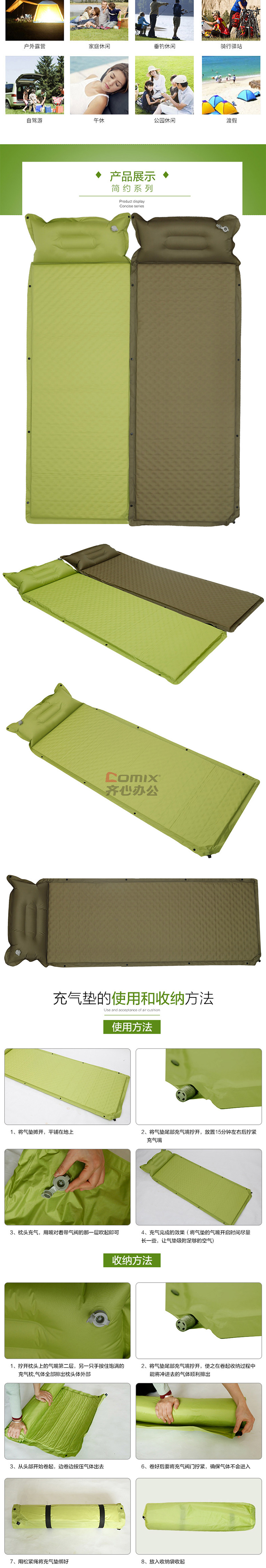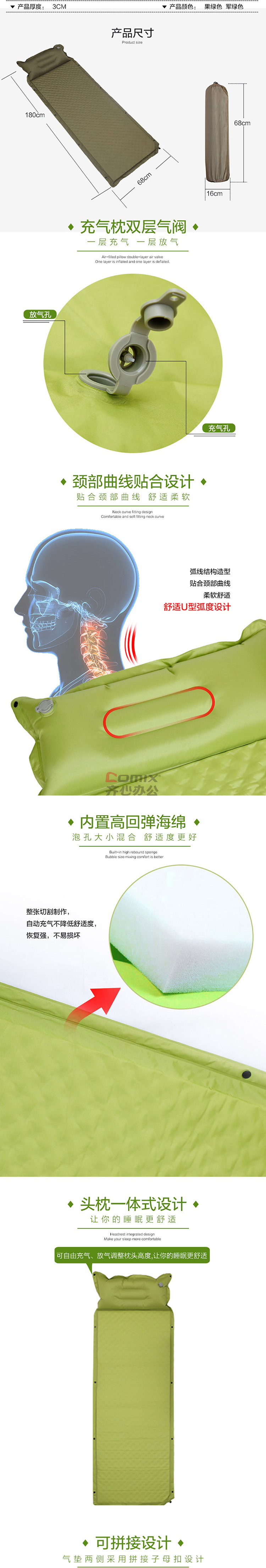 三极户外 TP1159 户外可拼接自动单人充气垫 果绿色 单位:个