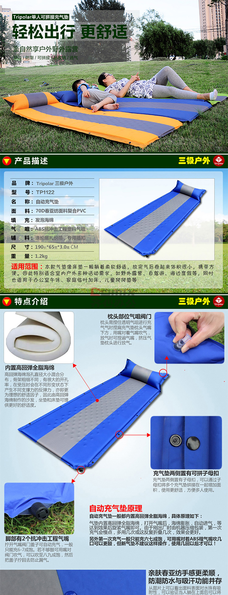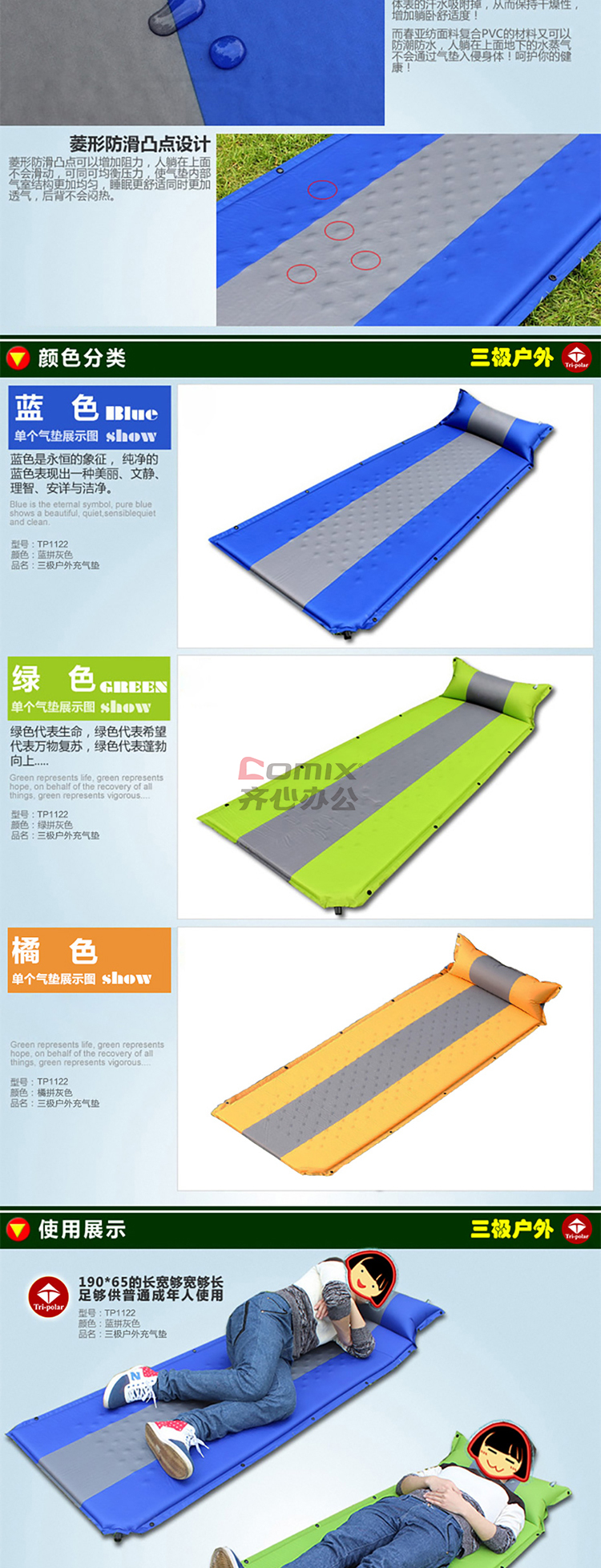 商品名称:三极户外 TP1122 单人户外充气垫 192*66*3cm 绿色 单位:个