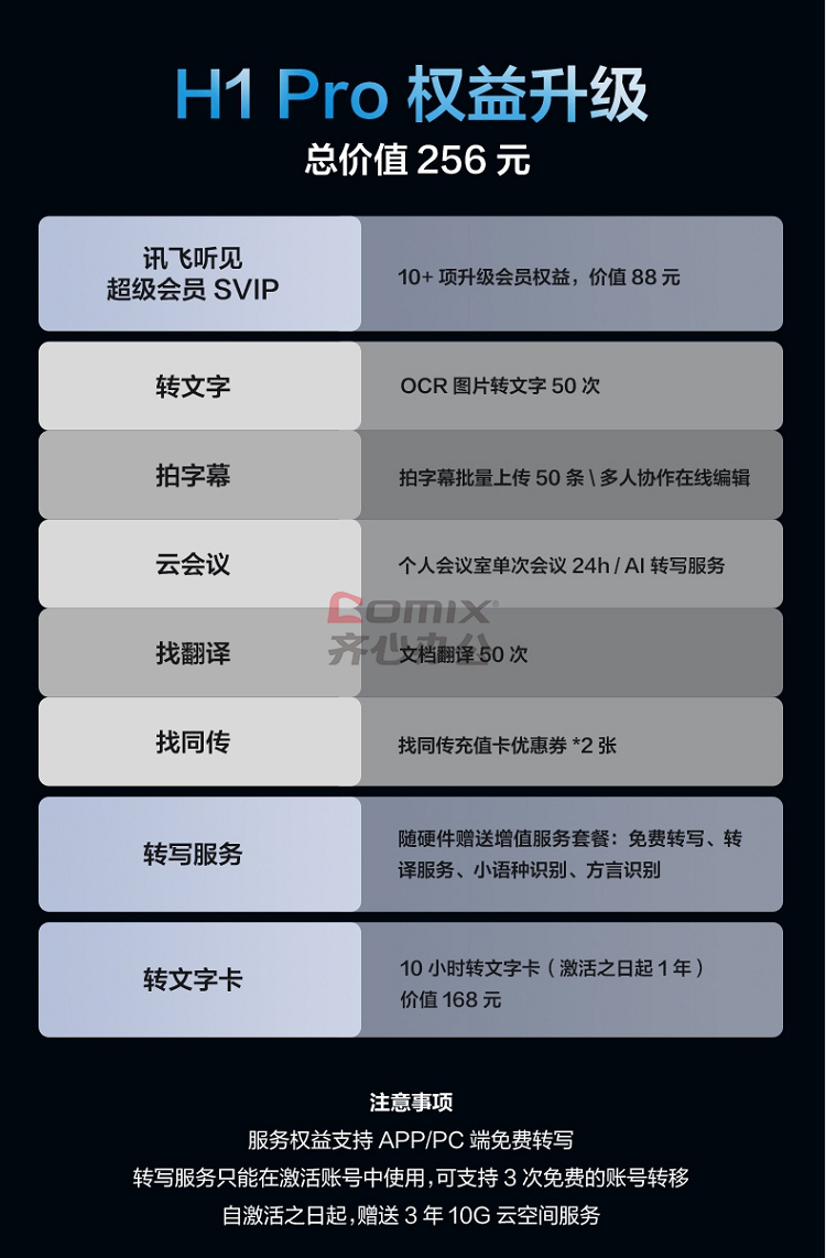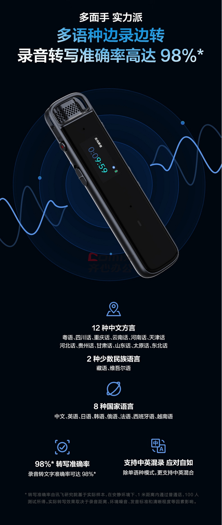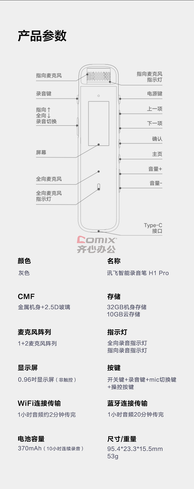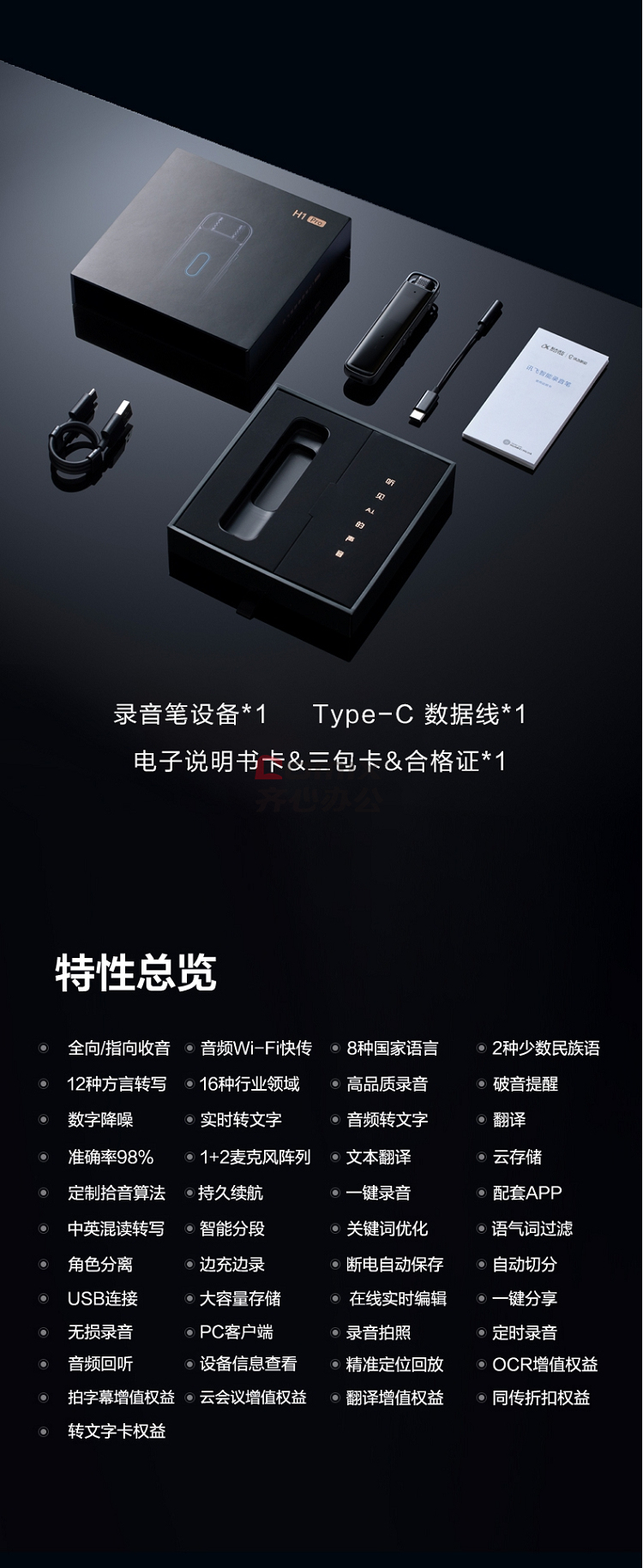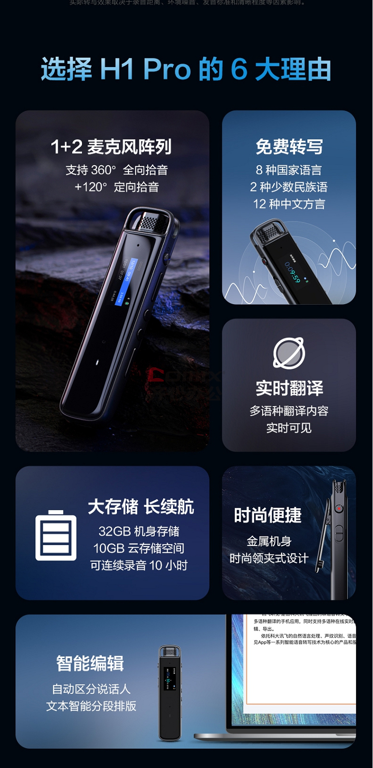 商品名称:科大讯飞 H1 Pro智能录音笔 32G 专业高清降噪 黑色(单位:支)
