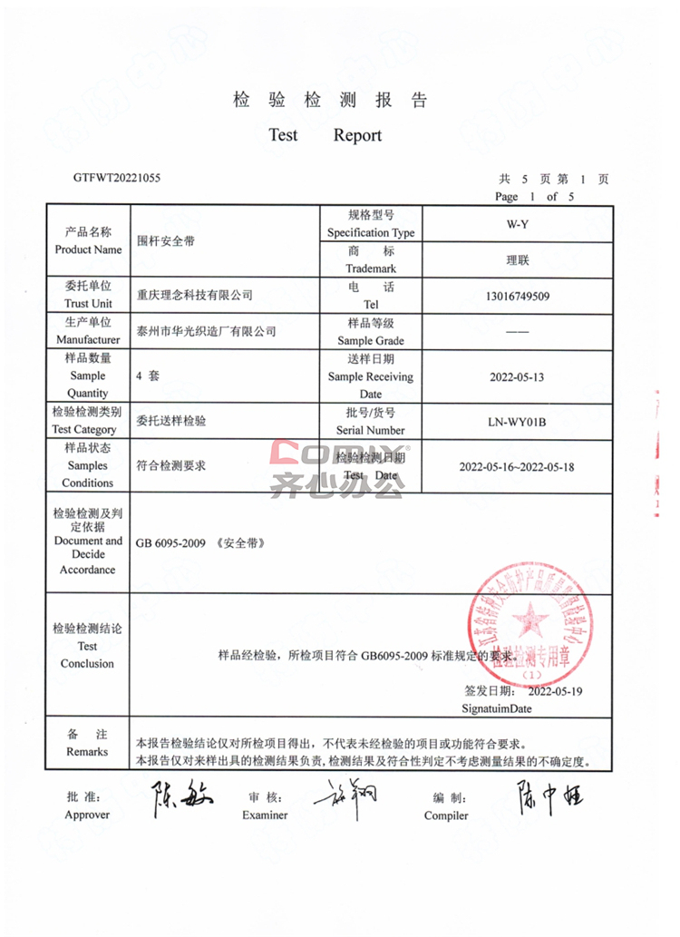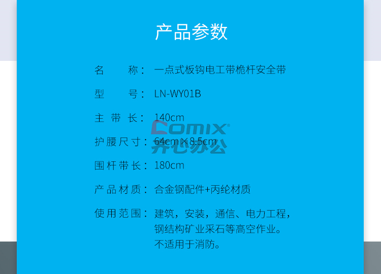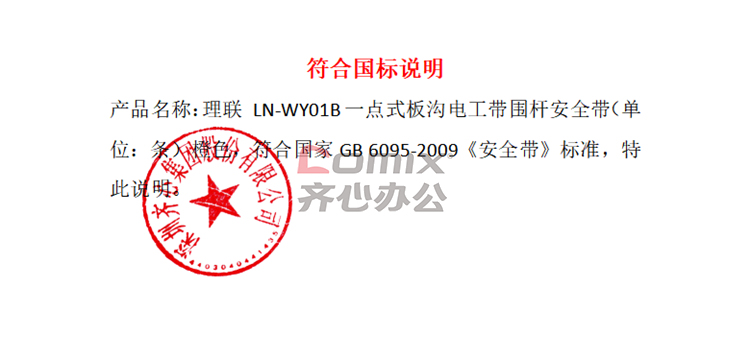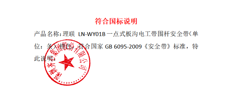 商品名称:理联 LN-WY01B 一点式板沟电工带围杆安全带(单位:条)橙色