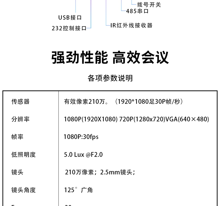 | 商品型号 | HSD-C200高清视频会议摄像头/大广角USB免驱 1个/套 |