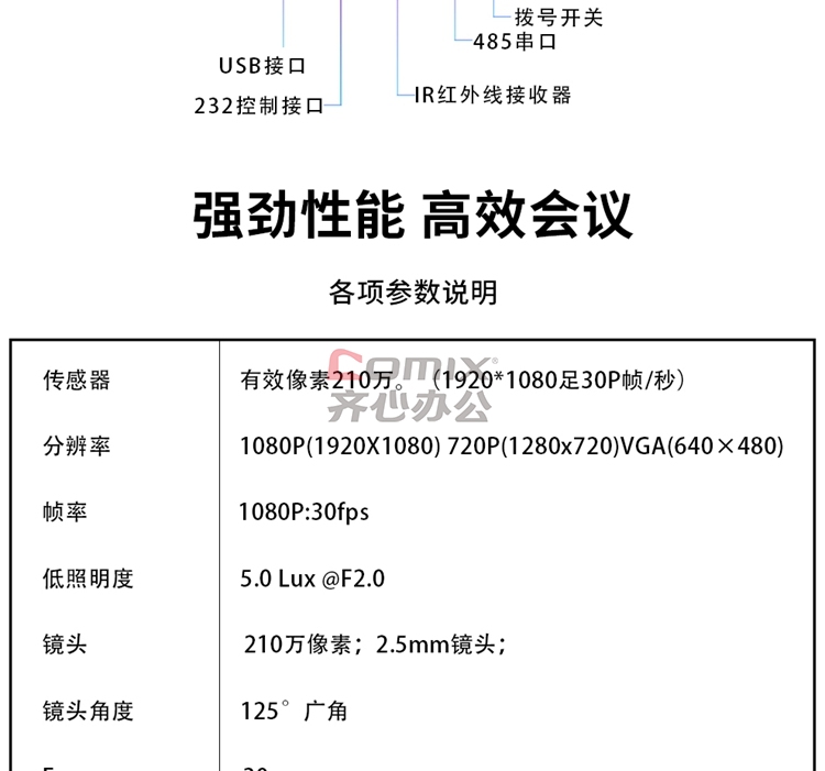 - 商品型号:HSD-C200高清视频会议摄像头/大广角USB免驱 1个/套