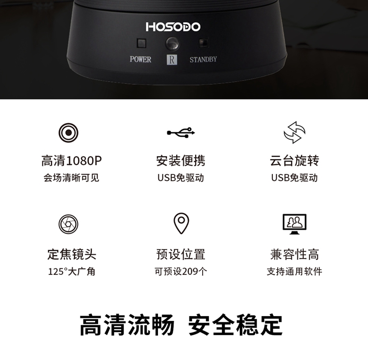 - 商品名称:宏视道(HOSODO) HSD-C200 高清视频会议摄像头/大广角USB免驱 会议摄像头 (计价单位:台) 黑色