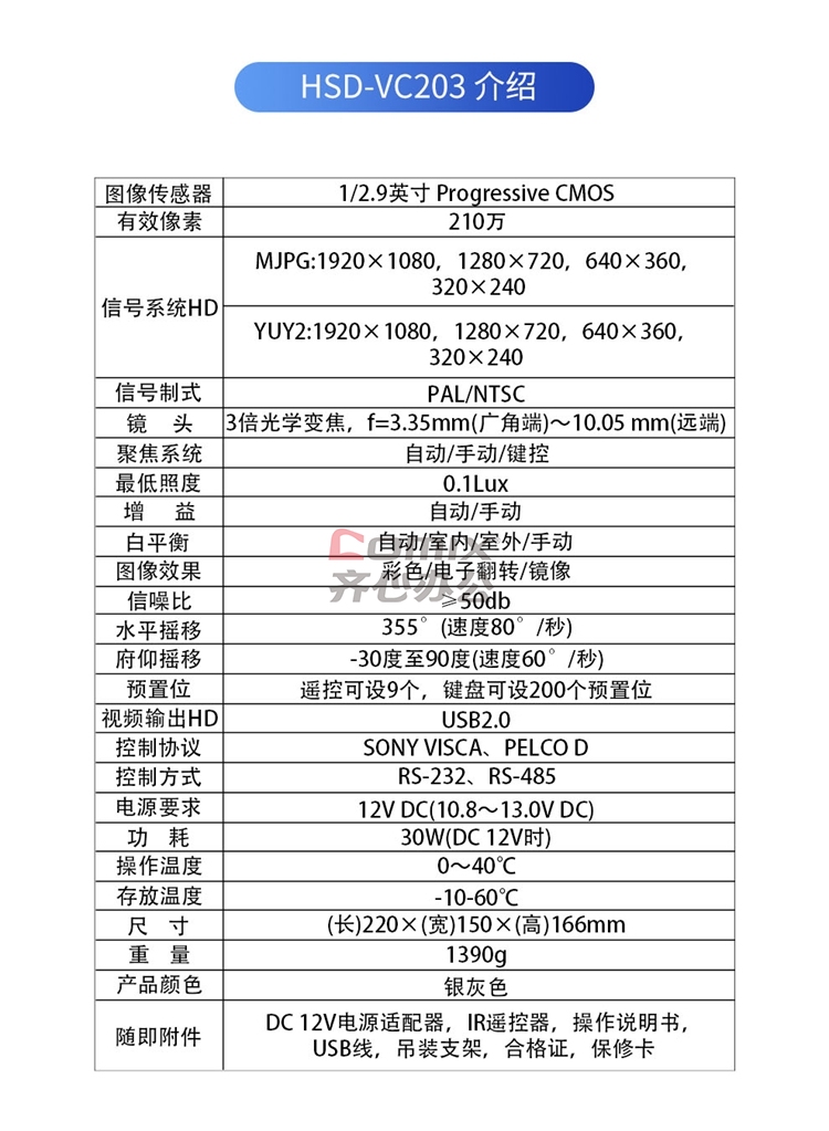 | 商品型号 | HSD-VC203 视频会议摄像头/3倍大广角/USB免驱 1个/套 |