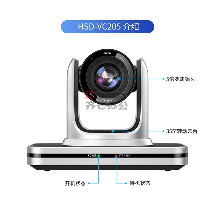 - 商品型号:HSD-VC205高清视频会议摄像头5倍变焦1080P高清USB视频会议摄像机 1个/套