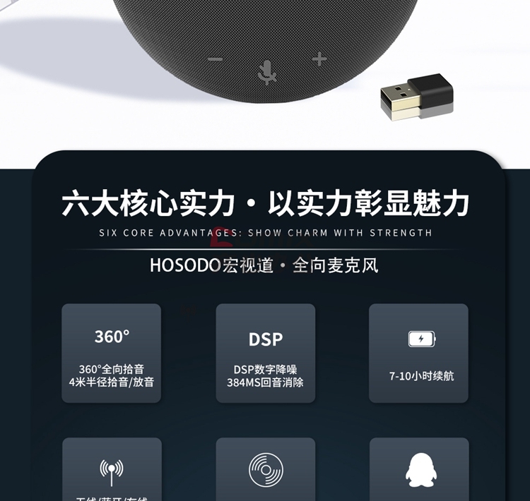 - 商品名称:宏视道(HOSODO) HSD-BT31WB 视频会议全向麦克风 全向麦克风 (计价单位:台) 黑色