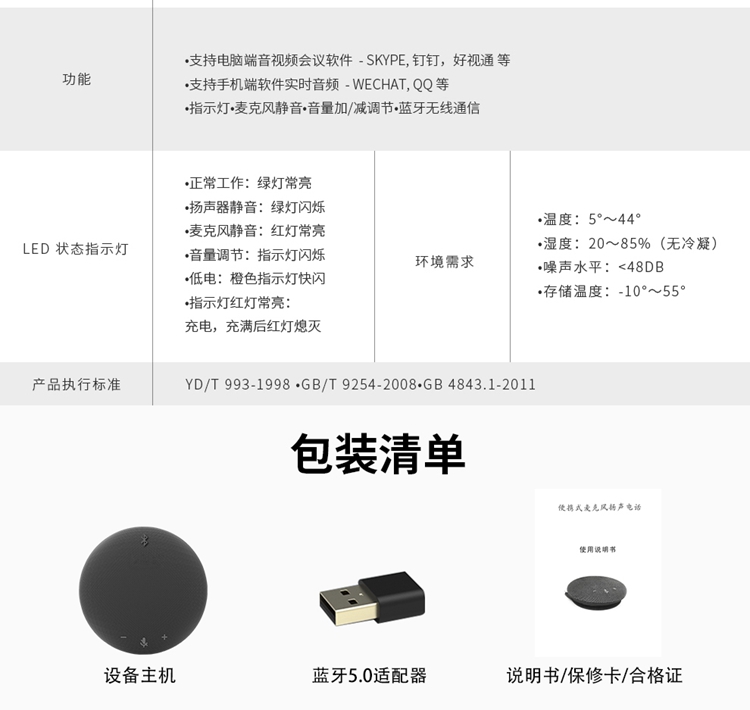 | 商品型号 | HSD-BT31WB视频会议全向麦克风 1个/套 |