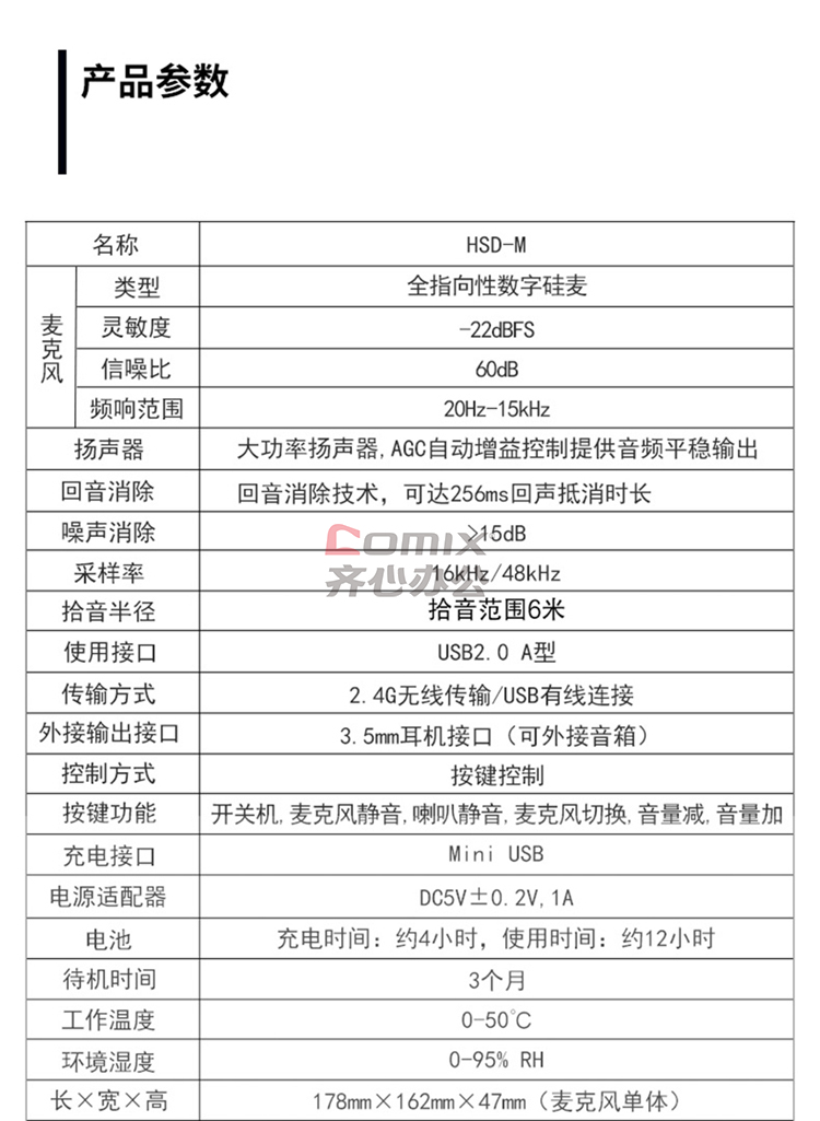 | 商品型号 | HSD-M1视频会议全向麦克风 1个/套 |