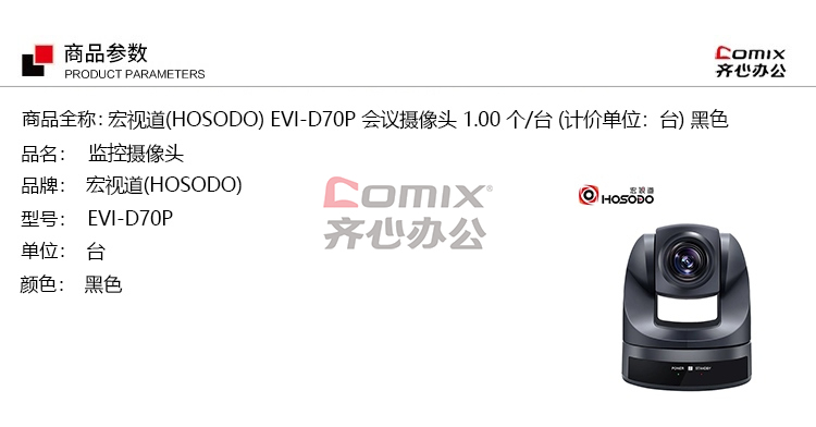 - 商品名称:宏视道(HOSODO) EVI-D70P 视频会议摄像头 会议摄像头 (计价单位:台) 黑色