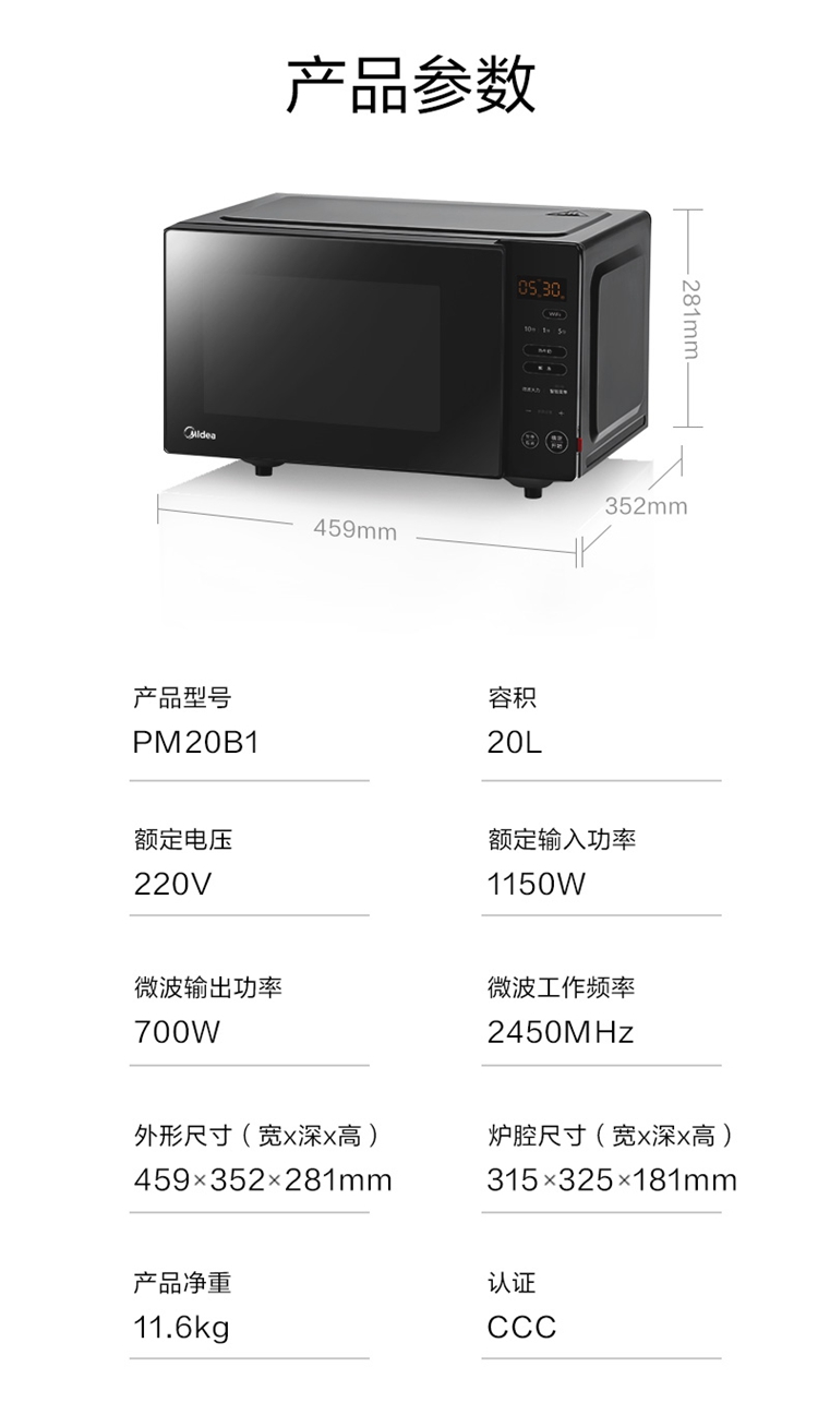 商品名称:美的 PM20B1 20L 多功能家用微波炉 黑色(单位:台)