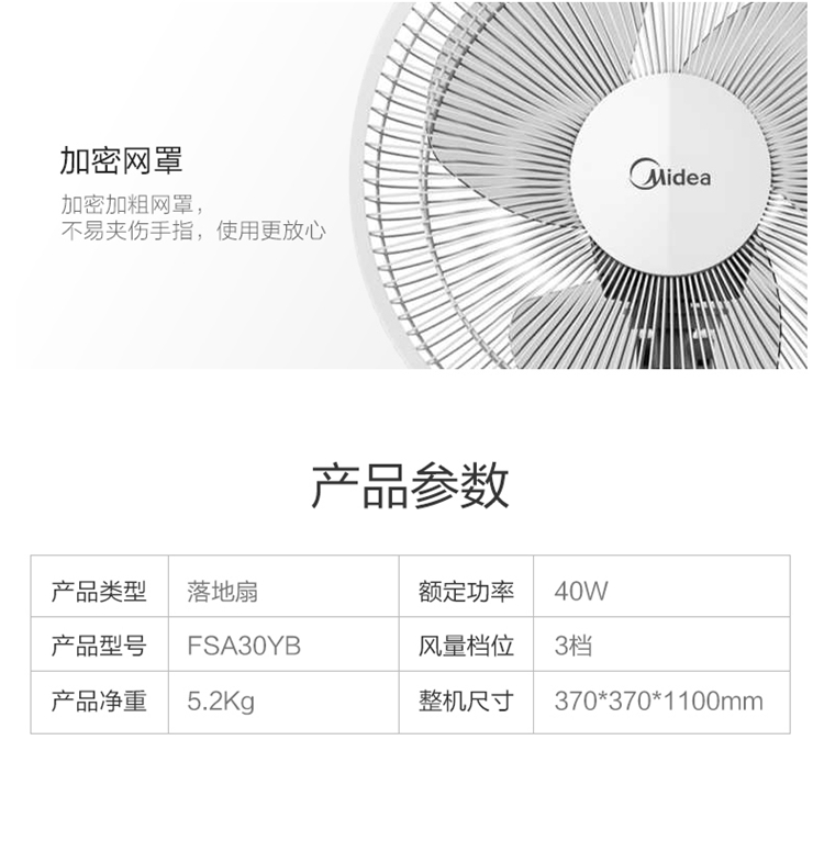 商品名称:美的 FSA30YB 摇头落地扇(单位:台)