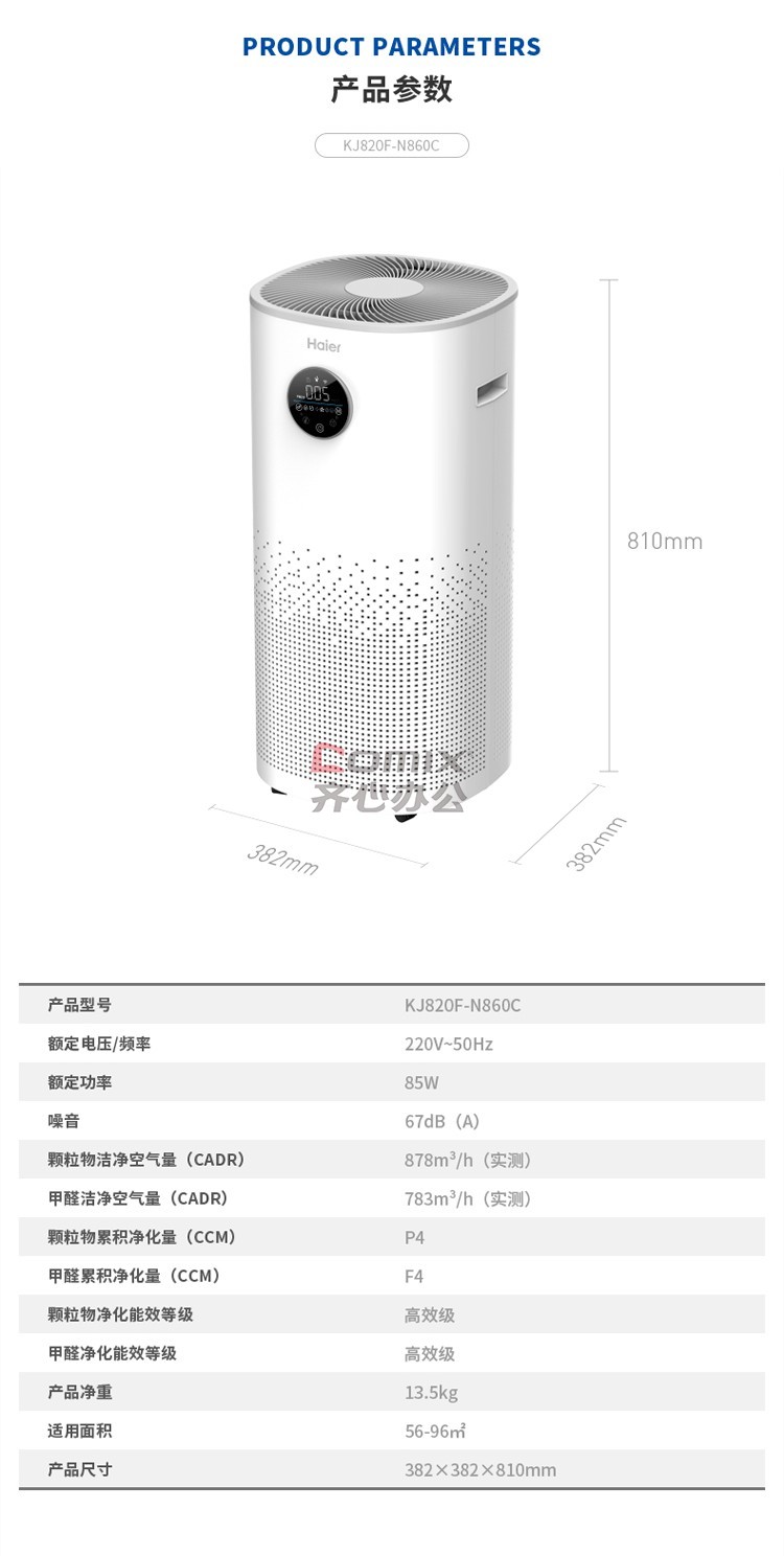 商品名称:海尔 KJ820F-N860C 85W 空气净化器 白色 (单位:台)