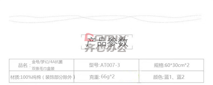 商品名称:金号 AT007-3 A-TIMES系列梦幻4A抗菌毛巾-3 双条毛巾盒装 (单位:盒)