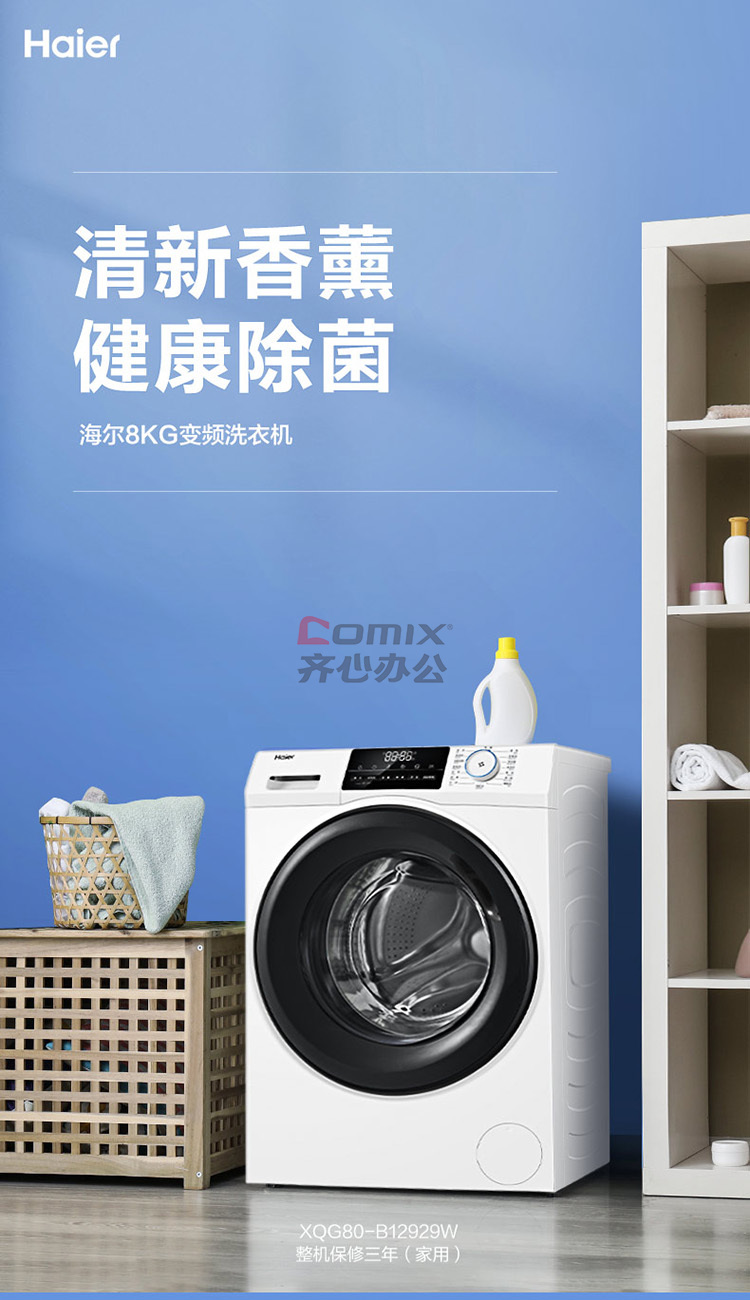 商品名称:海尔 XQG80-B12929W 变频8公斤滚筒洗衣机 白色 (单位:台)