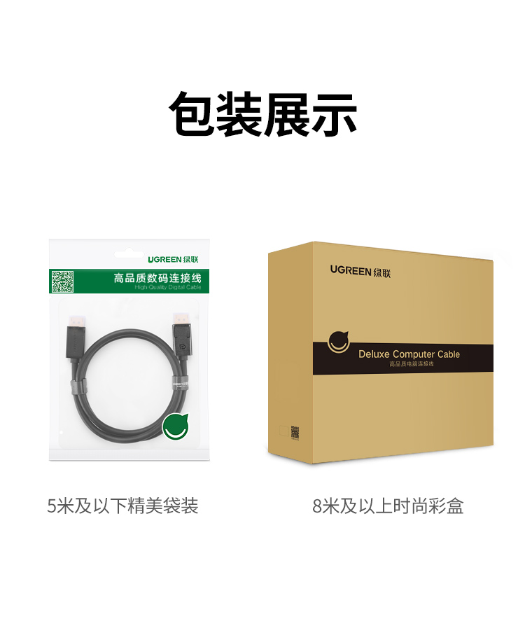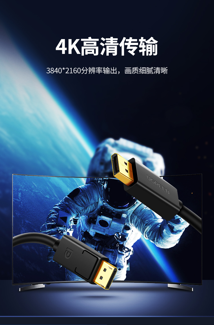 商品名称:绿联/UGREEN DP高清线 10245 1.2版 2K*4KDisplayPort公对公接线 1.5米
