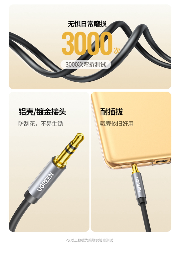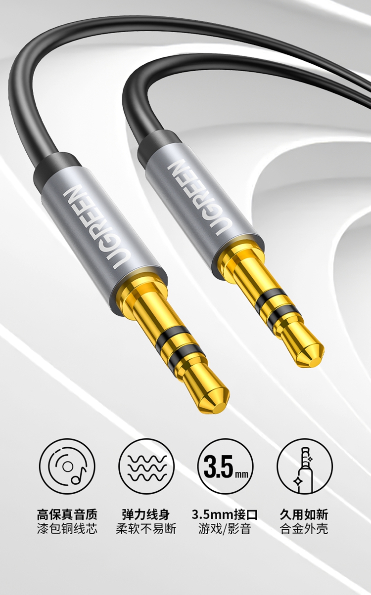 商品名称:绿联 UGREEN 车用AUX音频线 3.5mm公对公 10733 1米 (黑色)