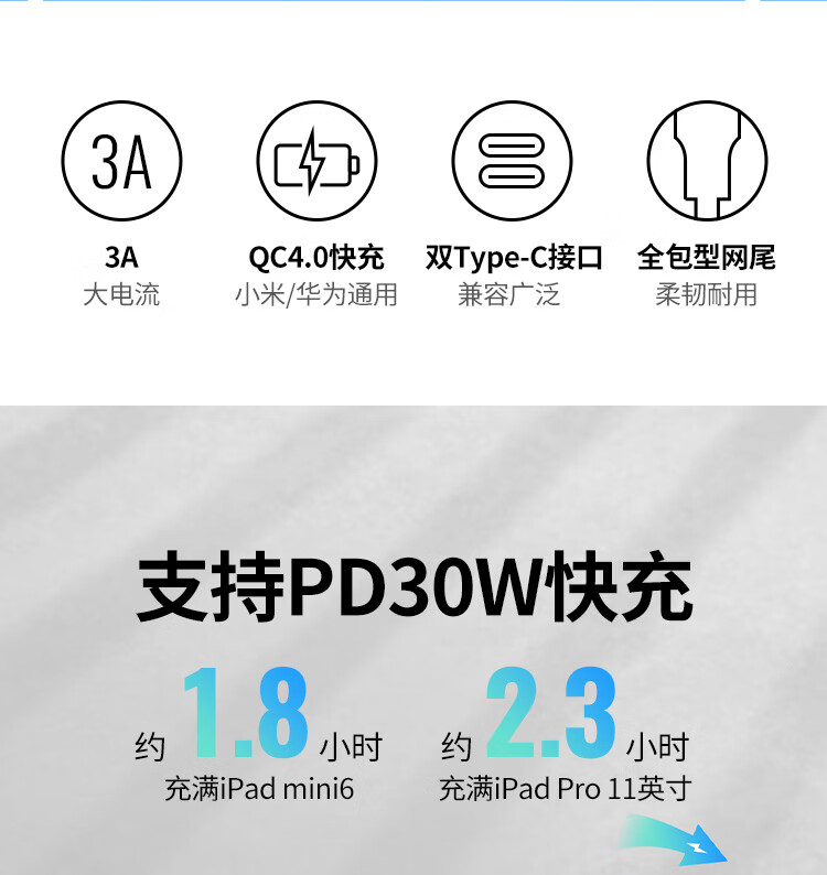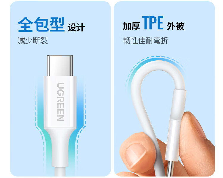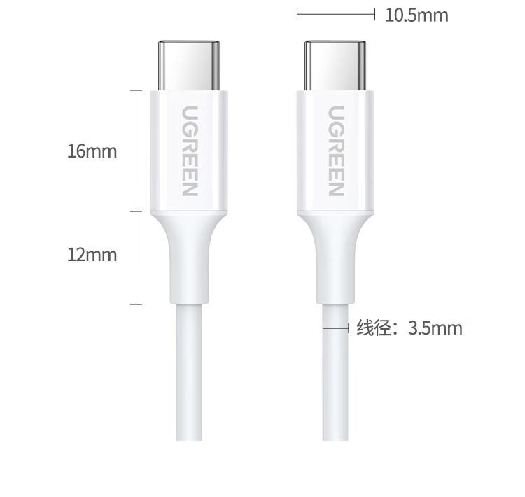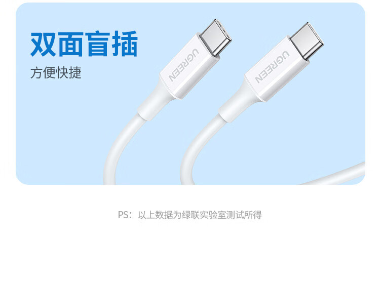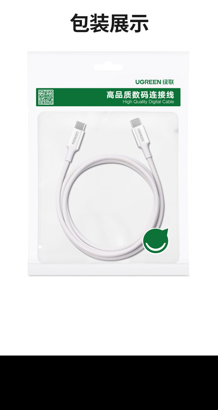 - 商品名称:绿联 UGREEN 双头Type-C数据线 USB-C公对公3A PD快充线充电器线转接头通用iPadPro苹果MacBook华为MateBook1米 60518