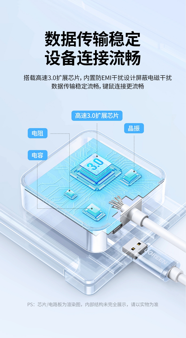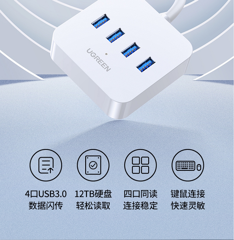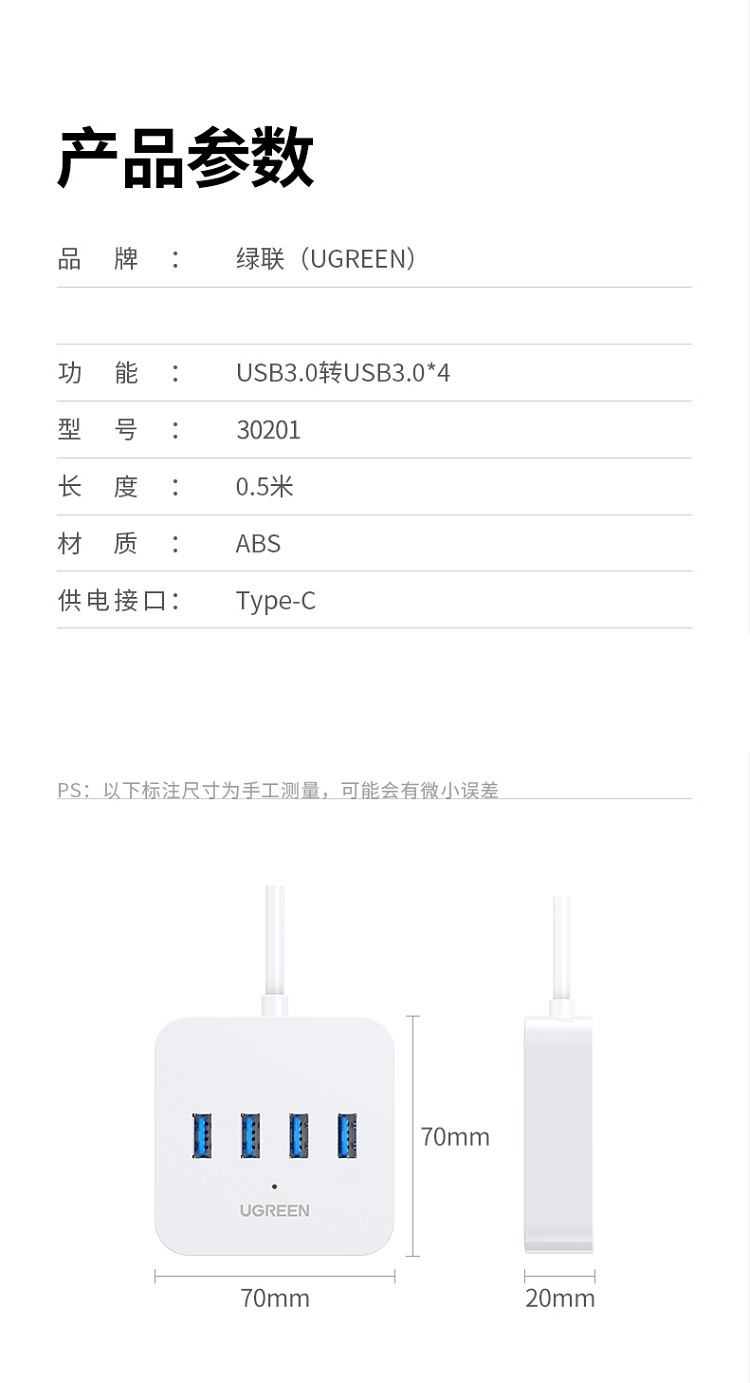 商品名称:绿联 分线器 30201 CR118 USB3.0 0.5m 4口 白色 单位:个