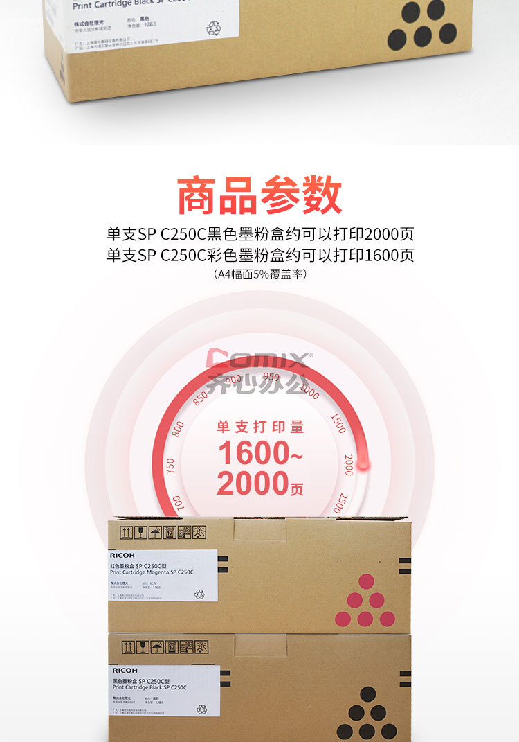 商品名称:理光 C250C 墨粉 红色 适用于SP C250DN(单位:盒)